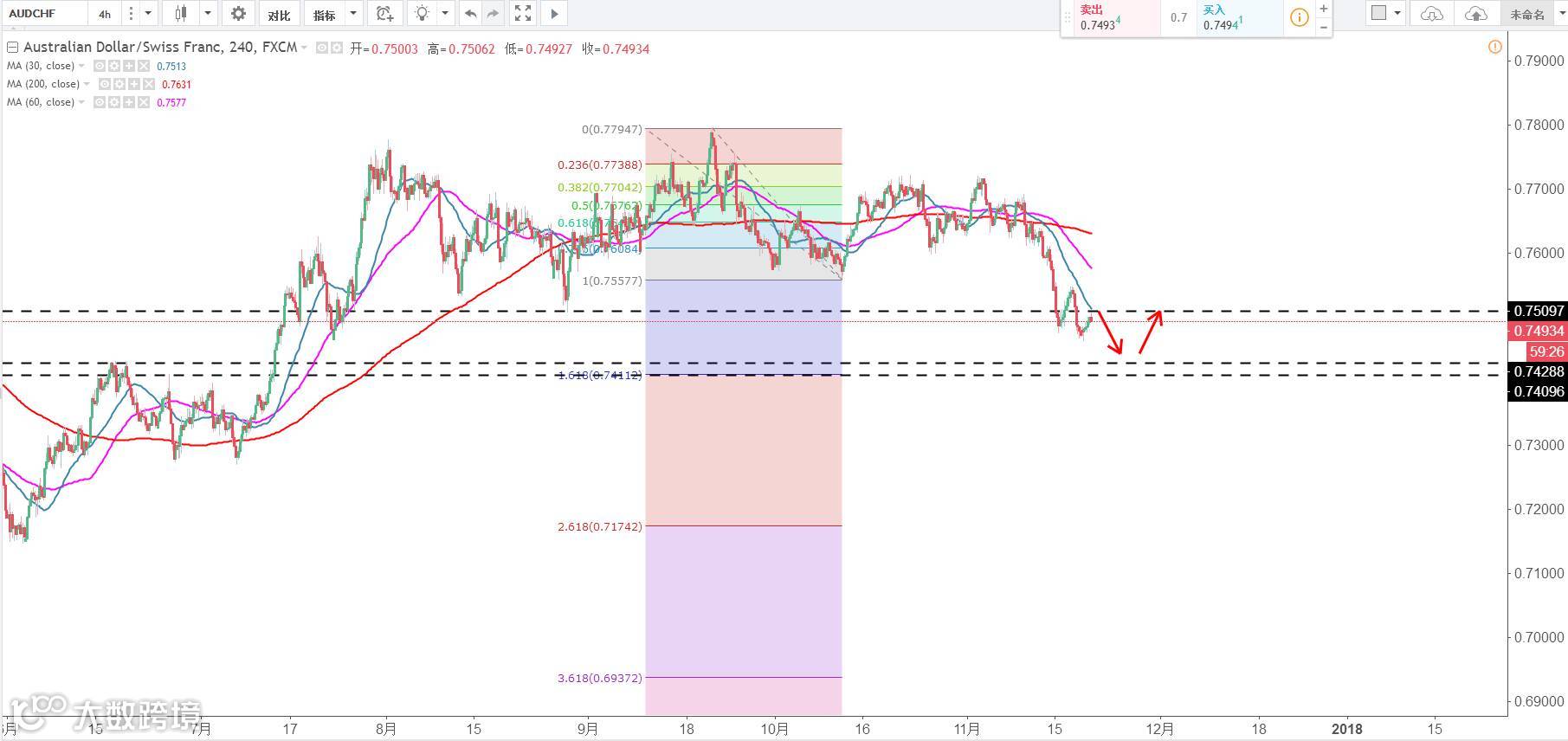 交易策略:1、0.7510空止损0.76,目标0.7430以及0.74 ;2、0.7420多单 止损0.7380目标0.7480以及0.75。(谨慎操作,请设置好止损线!)