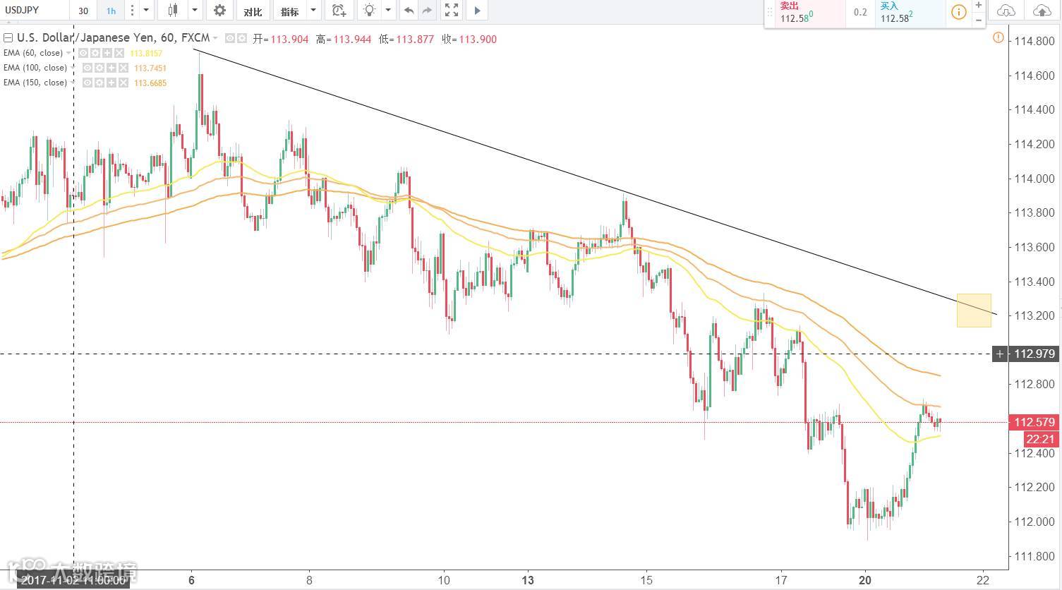 技术点评:日线触及111.86得到支撑展开反弹,在一段趋势的大概接近50美金时,我们就要开始谨慎,因为行情随时可能反转。因此中长线的加仓112.67加仓设置保本止损。日内操作回踩做多为主,谨慎操作。