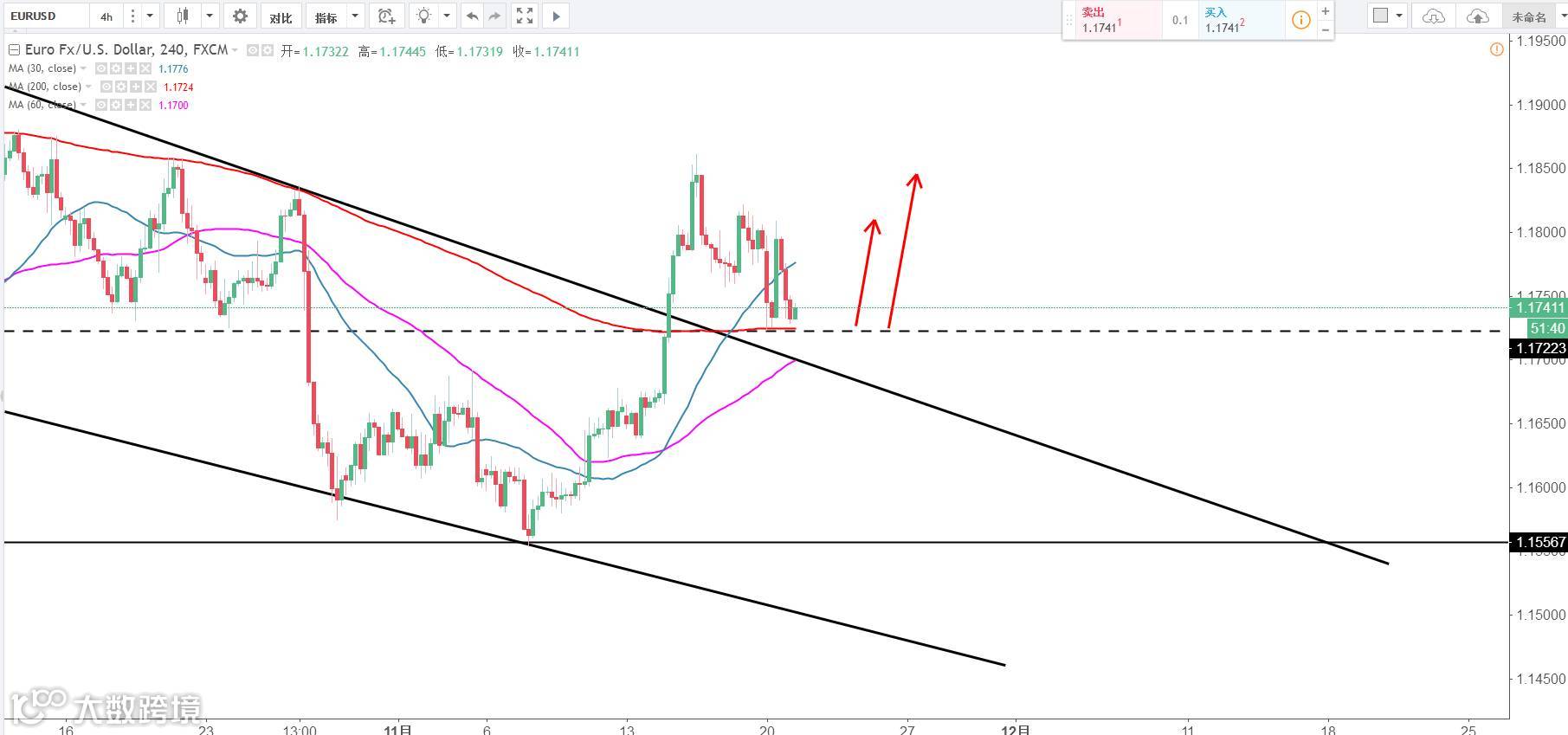 交易策略:1.1730区域做多止损1.1690,目标1.18以及1.1850。(谨慎操作,请设置好止损!)