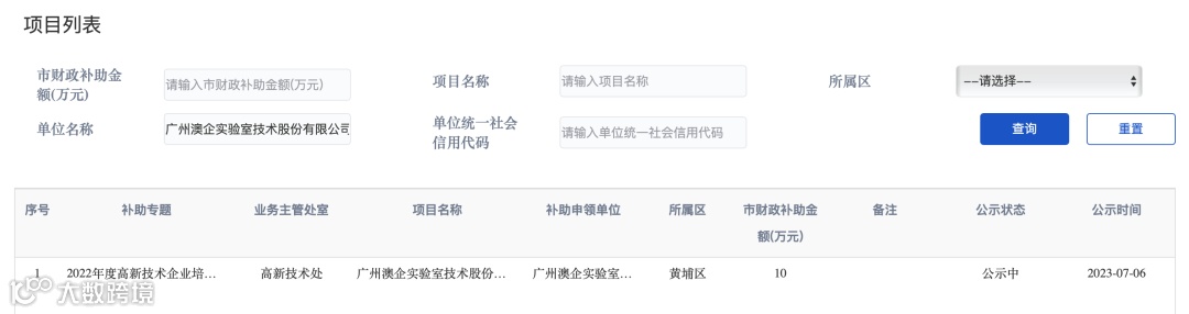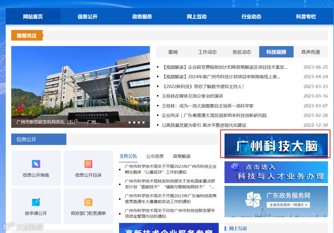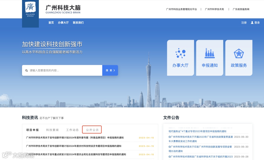 2.在“广州科技大脑”中点击“公开公示”;