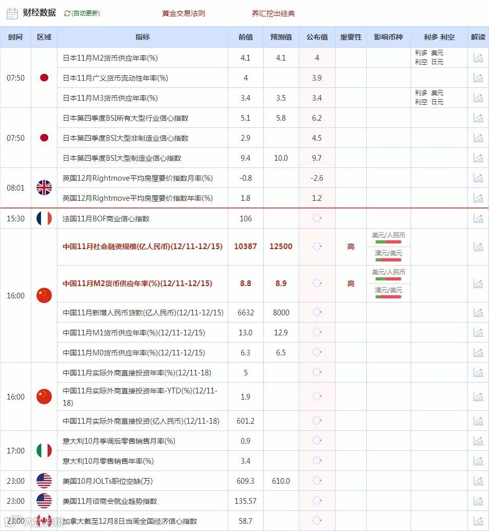 周一(12月11日)亚洲时段,投资者需主要关注07:50公布的日本11月M2货币供应年率。