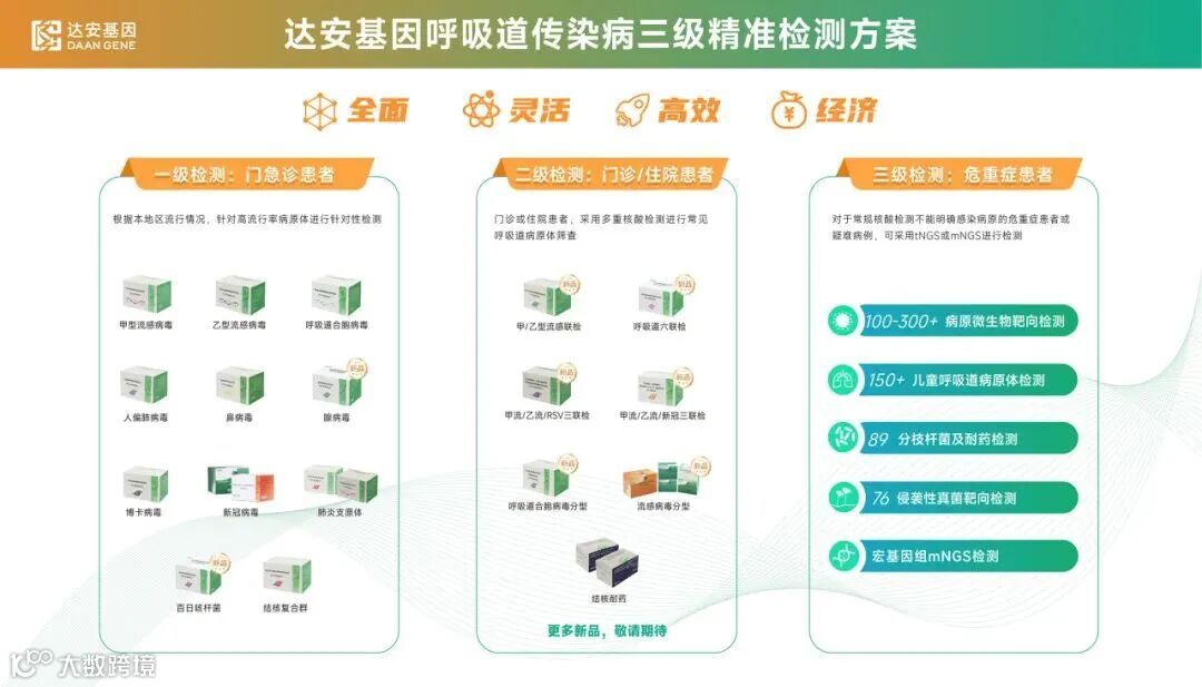 呼吸道传染病精准检测方案升级:新增六项呼吸道病原体核酸检测试剂(国械注准20253401117),搭配已上市的甲乙流联检试剂,形成“八项呼吸道病原体核酸检测方案”,“全面、灵活、高效、经济”的三级精准检测方案更加完善,兼顾临床诊疗需求与医保合理支出。
