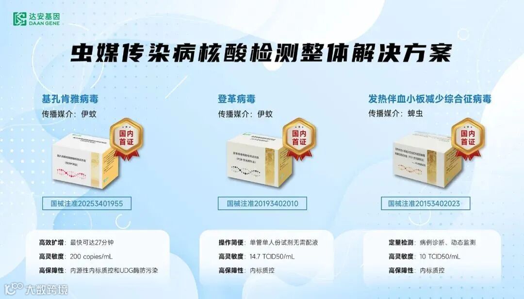 国内首款基孔肯雅病毒核酸检测试剂:近期获得国家药监局三类证(国械注准20253401955),填补虫媒传染病检测空白,助力新发突发传染病快速防控。