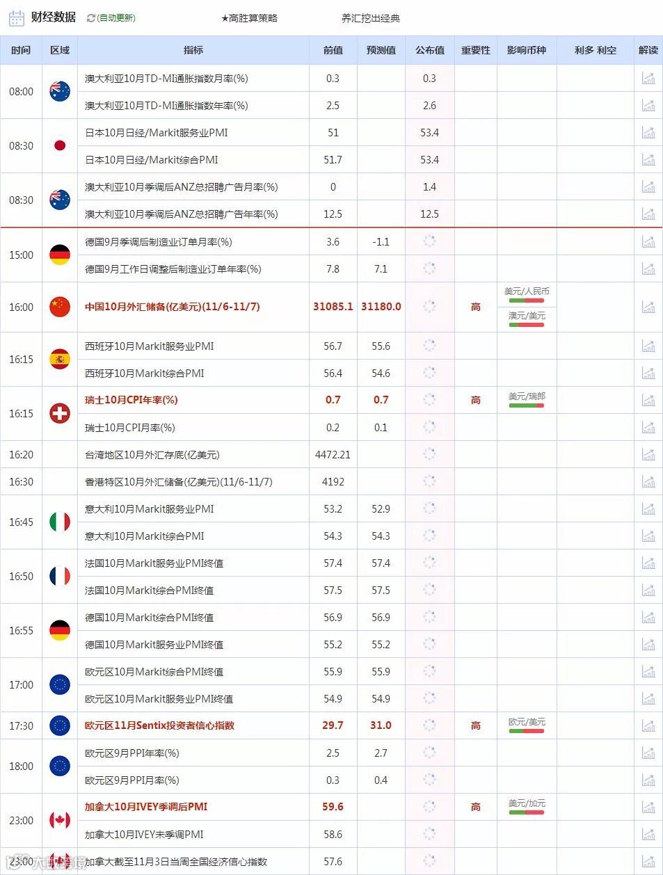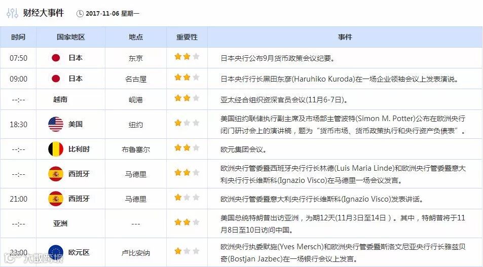【财经数据】11月6日财经日历