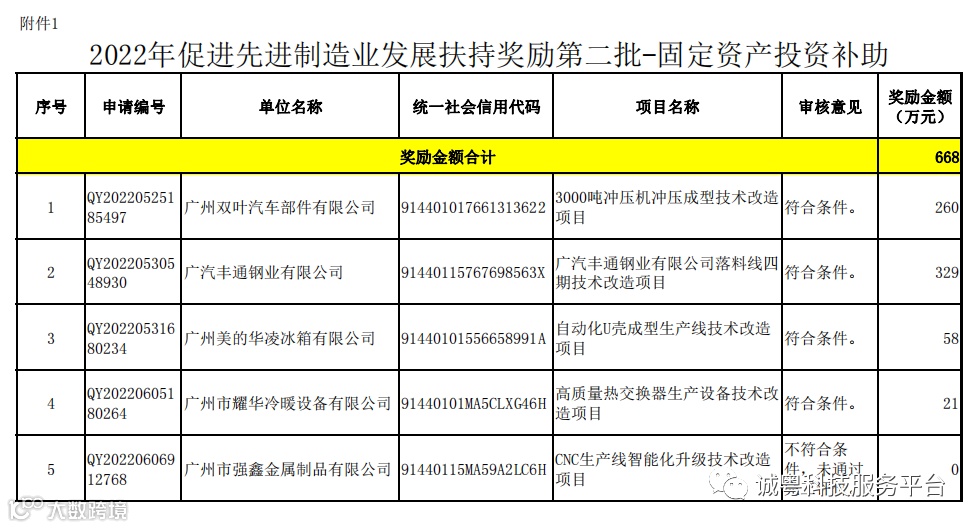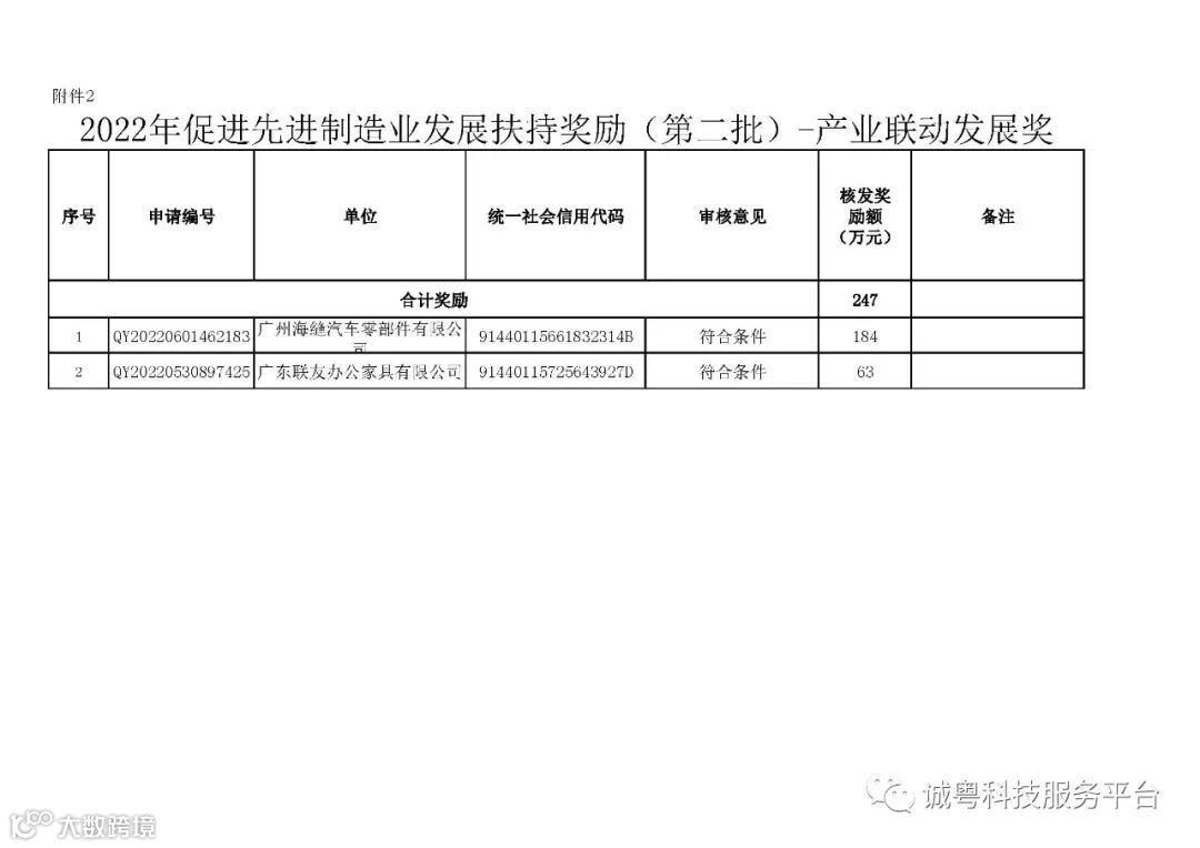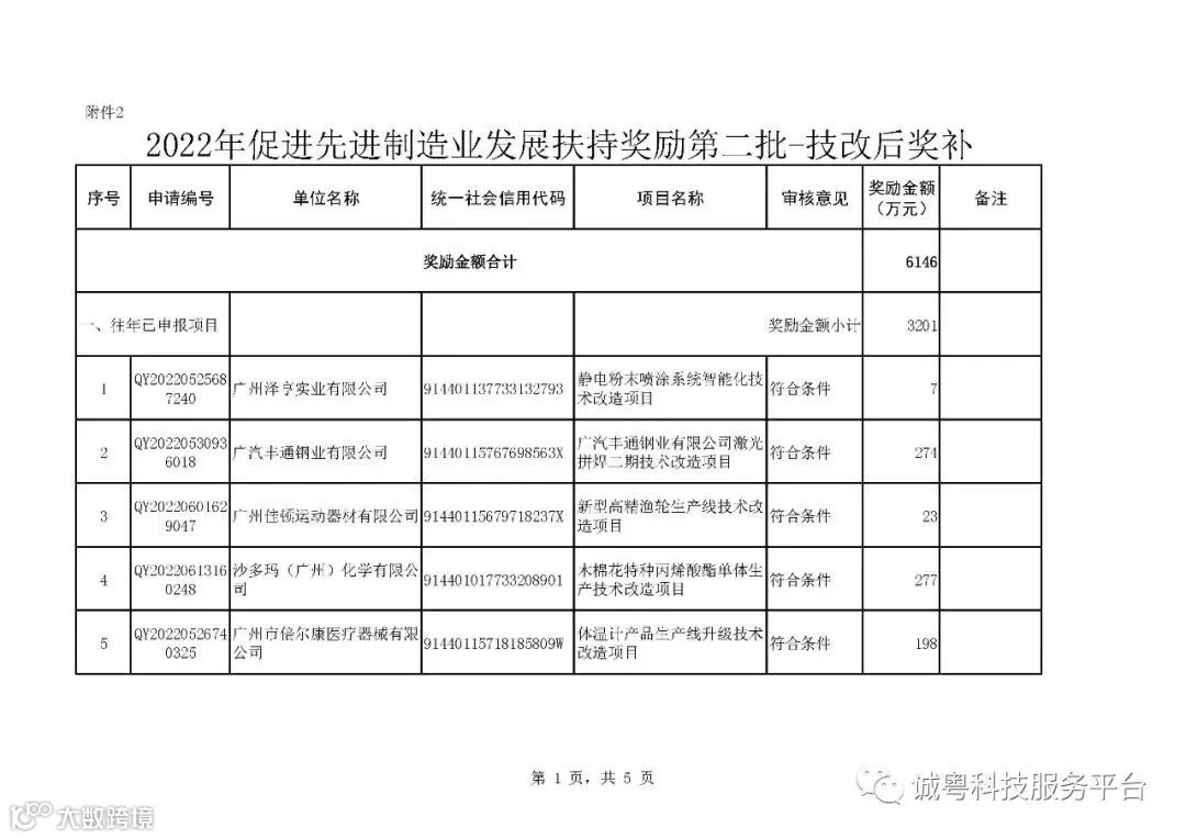 根据《广州南沙新区(自贸片区)促进先进制造业与建筑业发展扶持办法实施细则(2020年修订稿)》有关规定,经企业申报、部门核查、评审小组审定等程序,现对2022年促进先进制造业发展扶持奖励(第二批)拟兑现名单予以公示,公示期为11月15日—11月21日(5个工作日)。本批次共涉及以下事项:
