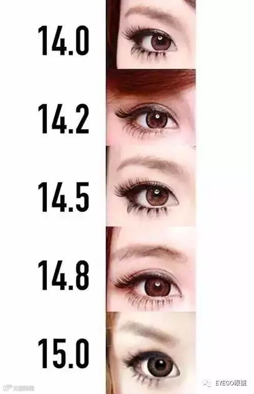 市面上比较常用的直径是13.8mm~14.5mm之间,15mm直径容易滑片、压迫眼球,而且吓人,滑片就是眨眼睛美瞳和眼球分离。