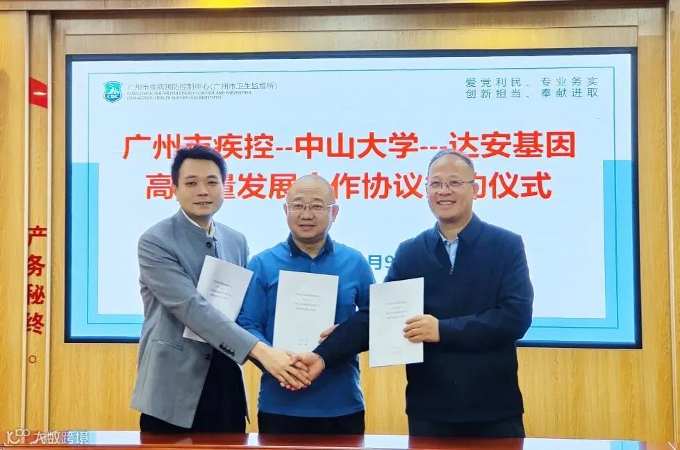 12月9日,广州市疾病预防控制中心(以下简称“广州市疾控中心”)与中山大学、广州达安基因股份有限公司(以下简称“达安基因”)签署高质量发展战略合作协议,三方将依托各自优势,促进资源整合,在传染病、慢性病防控、基本公共卫生及环境卫生与健康等领域开展长期合作。此次联动标志着三方正式结成多赢、可持续发展的战略合作伙伴关系,积极推动产学研用深度融合,携手打造疾控、院校、企业合作新标杆,为卫生健康事业高质量发展注入强劲动力。