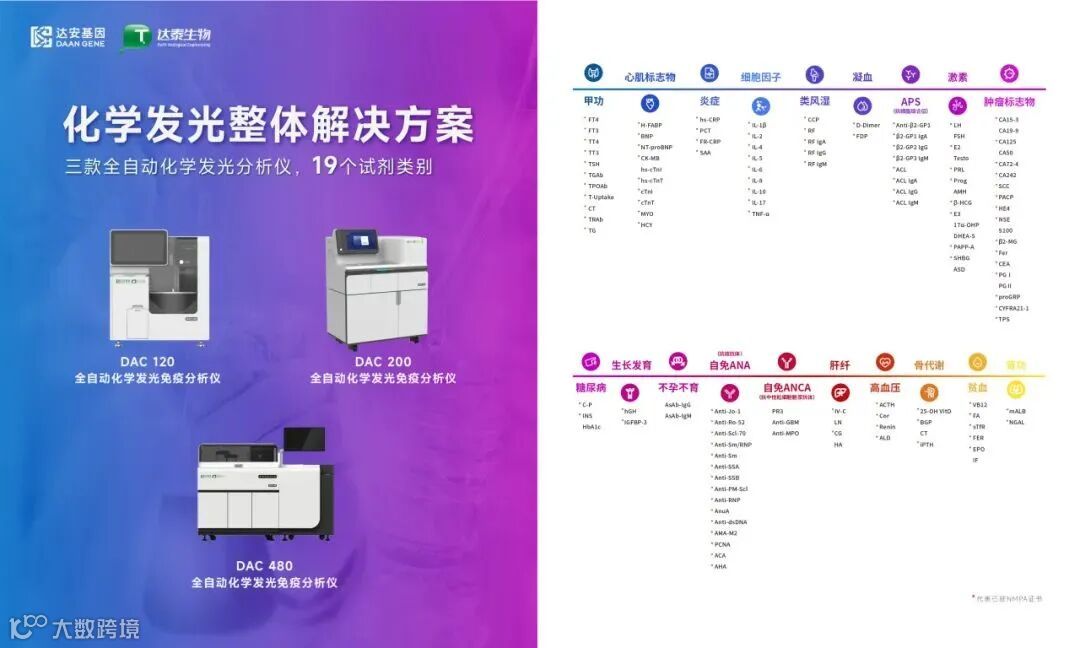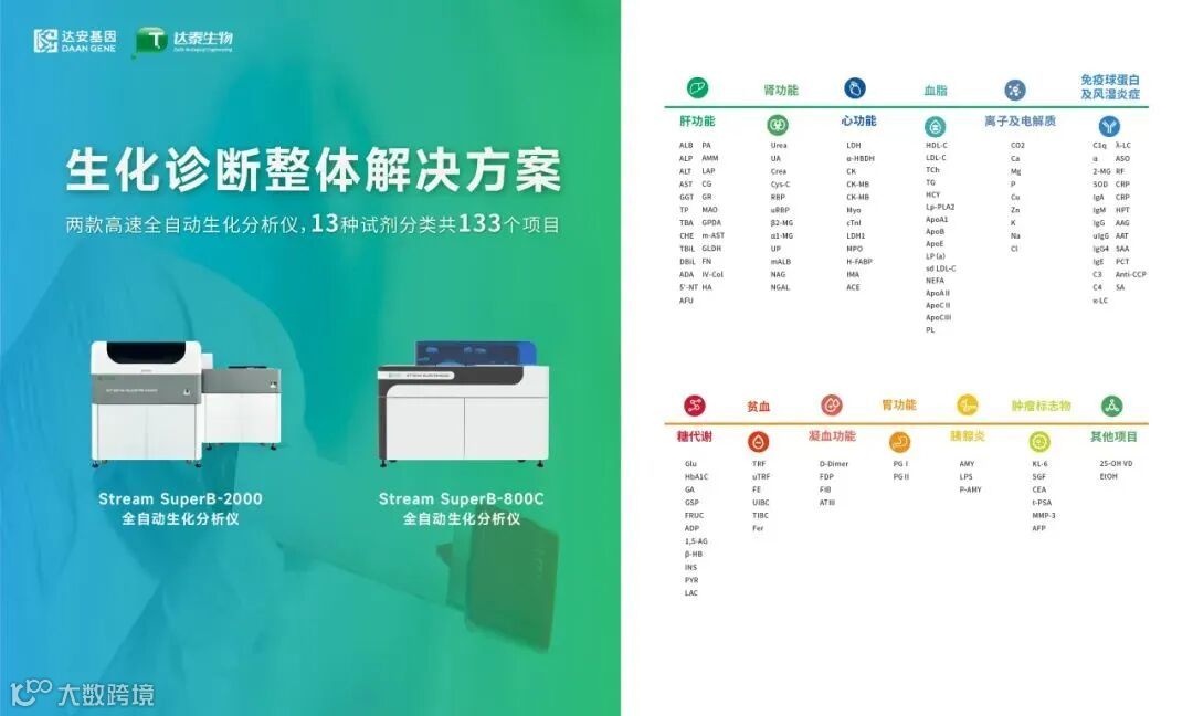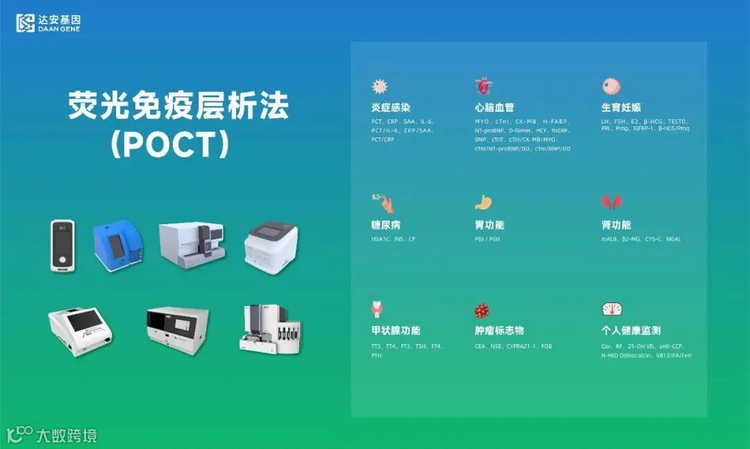 近年来,达安基因在生化诊断、化学发光、POCT领域持续发力,生化诊断平台已获批上市2款全自动生化分析仪和覆盖13种类别的133个检测项目,化学发光平台因已获批上市3款全自动化学发光分析仪和覆盖19个类别的119个检测项目,POCT平台构建了包括荧光免疫层析、胶体金等检测技术在内的多元化疾病检测方案。