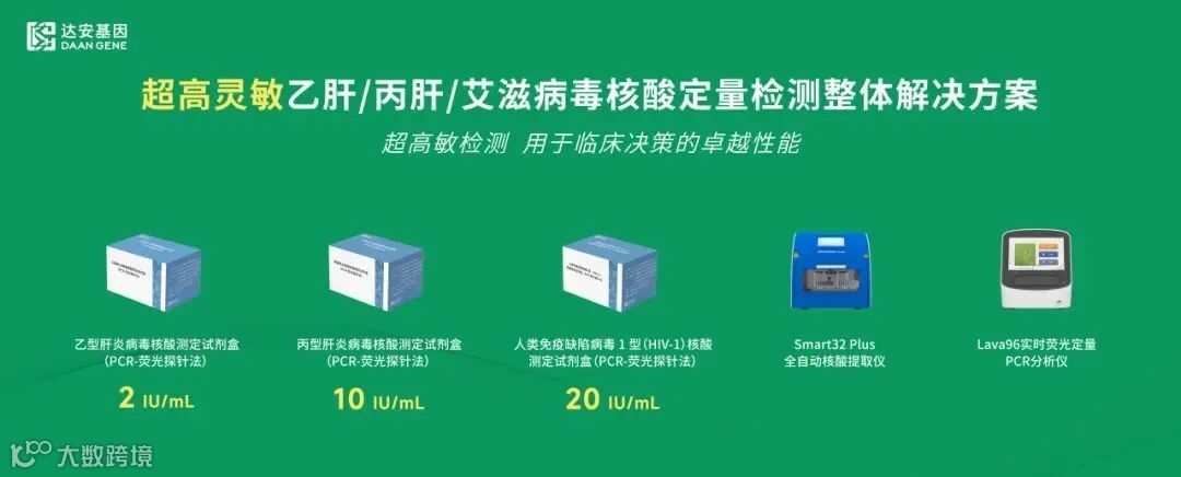 达安基因在十三五“艾滋病和病毒性肝炎等重大传染病防治"重大科技项目研发出灵敏度 2 IU/mL的超高敏乙型肝炎病毒核酸测定试剂盒、灵敏度10 IU/mL的超高敏丙型肝炎病毒核酸测定试剂盒、灵敏度 20 IU/mL的超高敏艾滋病毒核酸测定试剂盒,性能指标远超于同类型产品,可指导优化不同类型患者的治疗,及时提示病毒学应答及突破,为临床诊疗提供更精准的检测结果,提升精准诊疗管理水平。