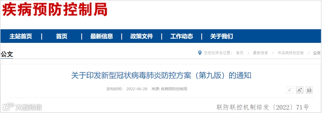 2022年6月27日,国务院应对新冠肺炎疫情联防联控机制综合组印发《新型冠状病毒肺炎防控方案(第九版)》,指出:奥密克戎变异株平均潜伏期缩短、传播能力更强、传播速度更快、感染剂量更低、致病力减弱、具有更强的免疫逃逸能力。