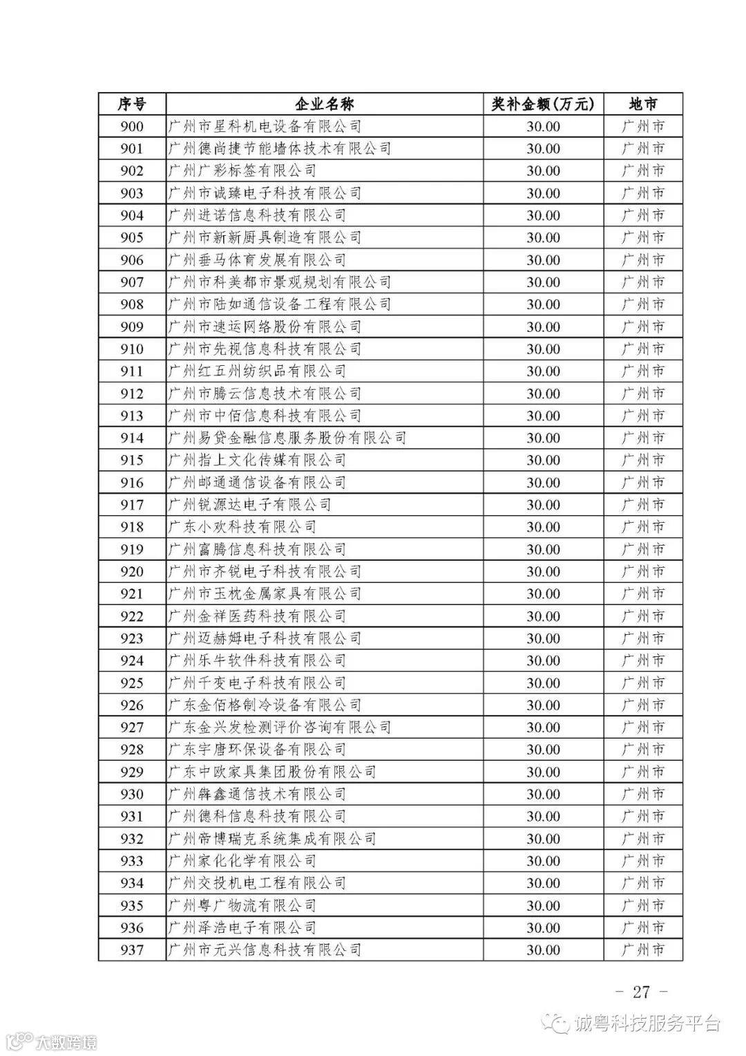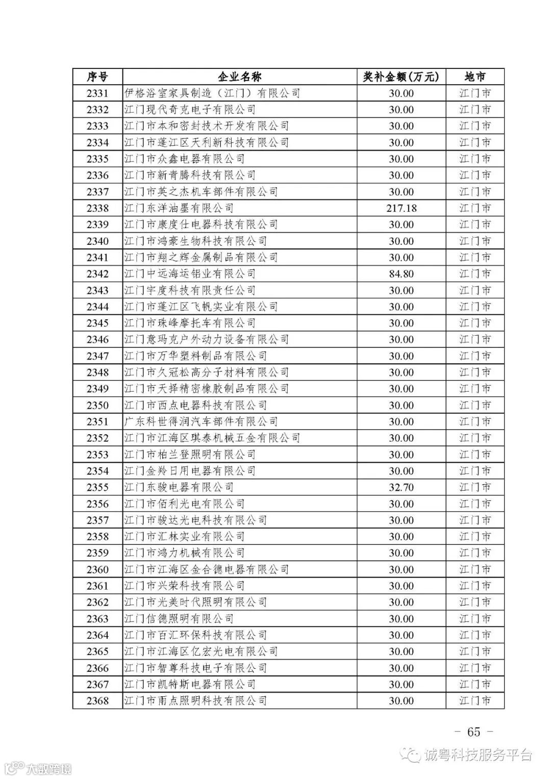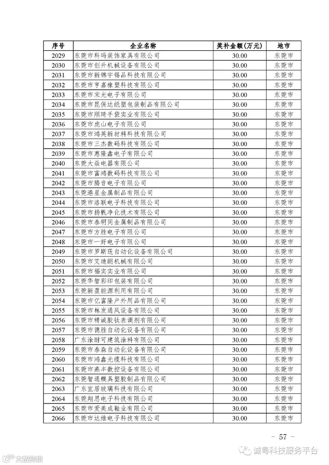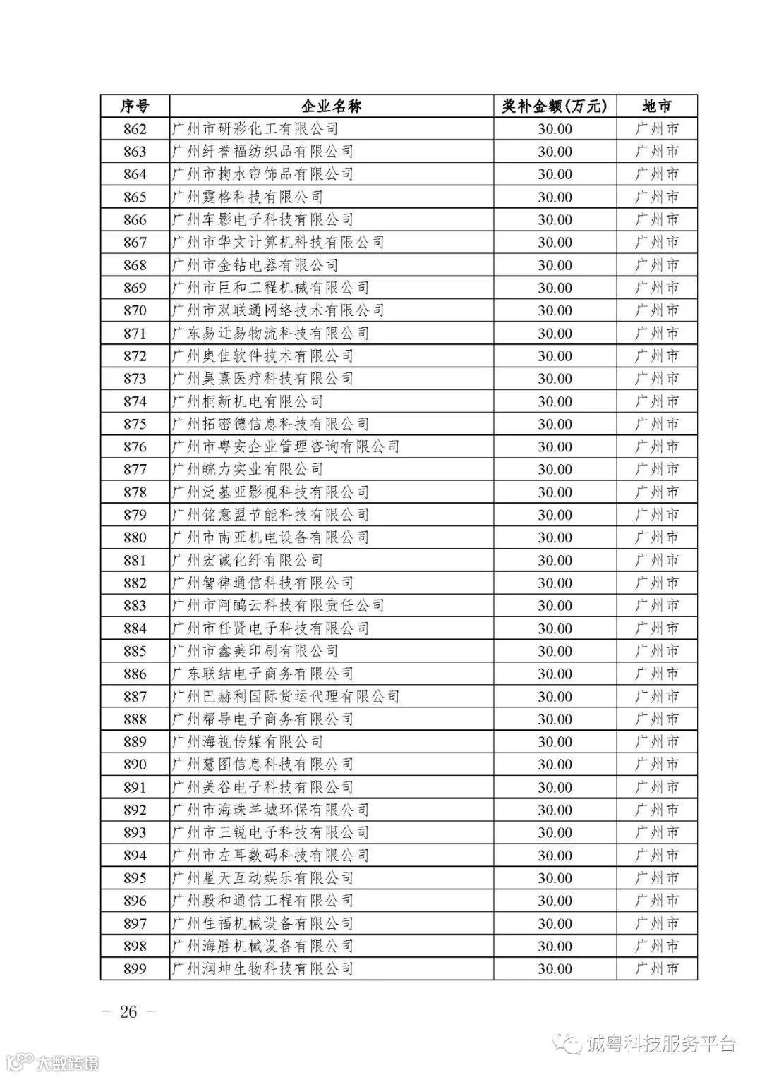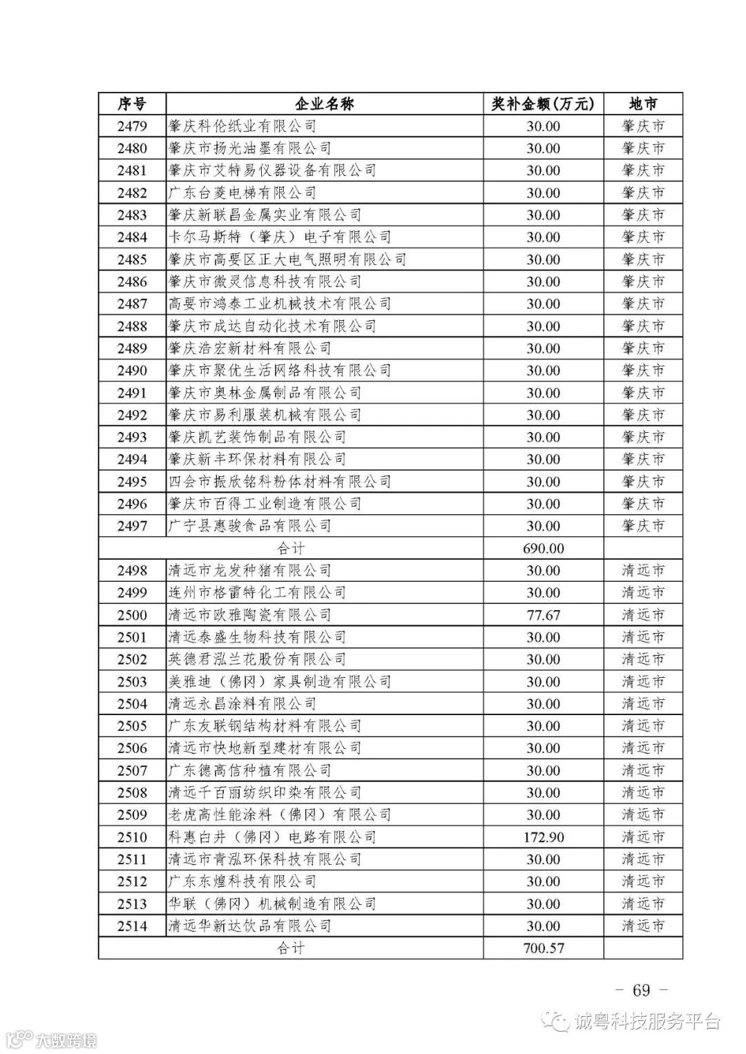 各有关单位: 根据《广东省高新技术企业培育工作实施细则》(粤科函高字〔2016〕1737号)的有关规定,经企业申报、专家评审、各地市培育机构核对奖补金额等程序,现对广州核心信息技术有限公司等2556家拟进入广东省2017年高新技术企业培育库的企业及奖补金额予以公示,公示期为5月2日-8日共7天。 如果对公示的拟入库培育企业及奖补金额有异议,请提供详细的事实证据,并于公示期内以实名、书面形式向省科技厅报告。对收到的异议,我们将严格按照相关规定处理。 附件:2017年广东省高新技术企业培育库拟入库企业(第二批)及奖补项目计划明细表 省科技厅 |