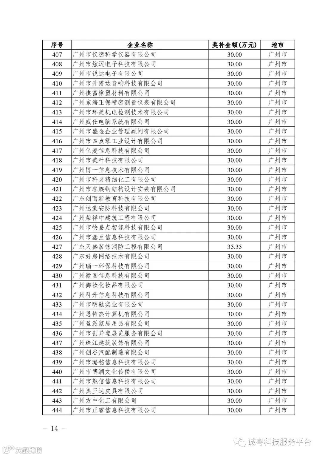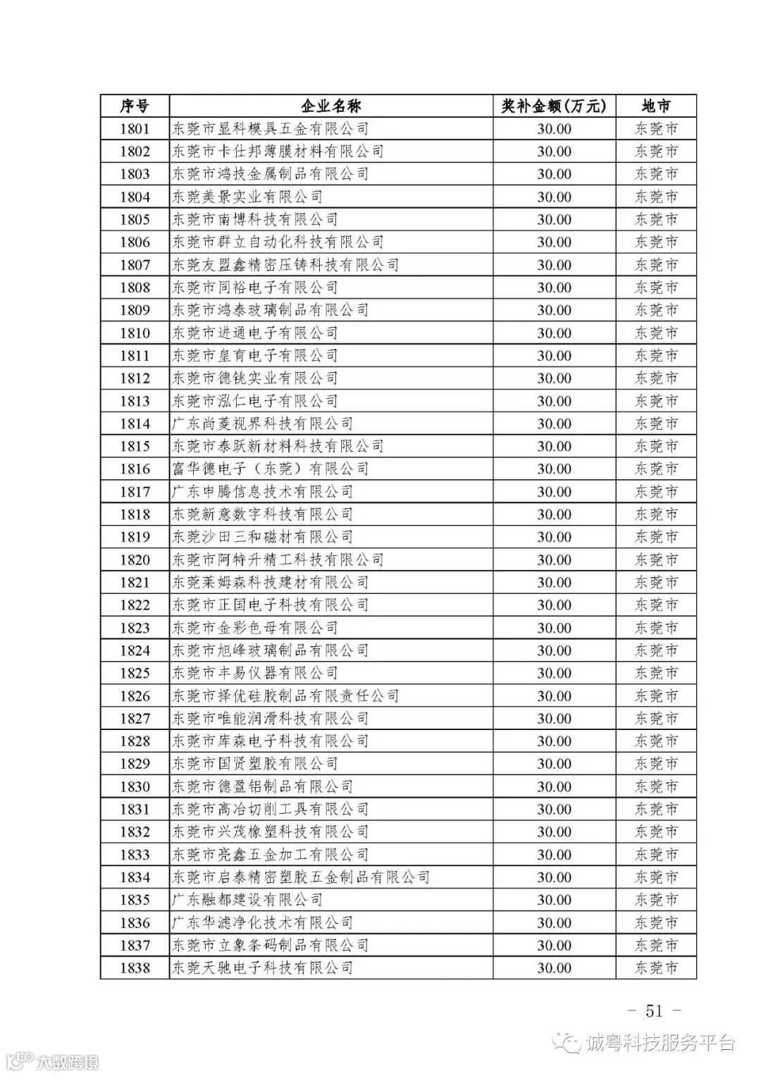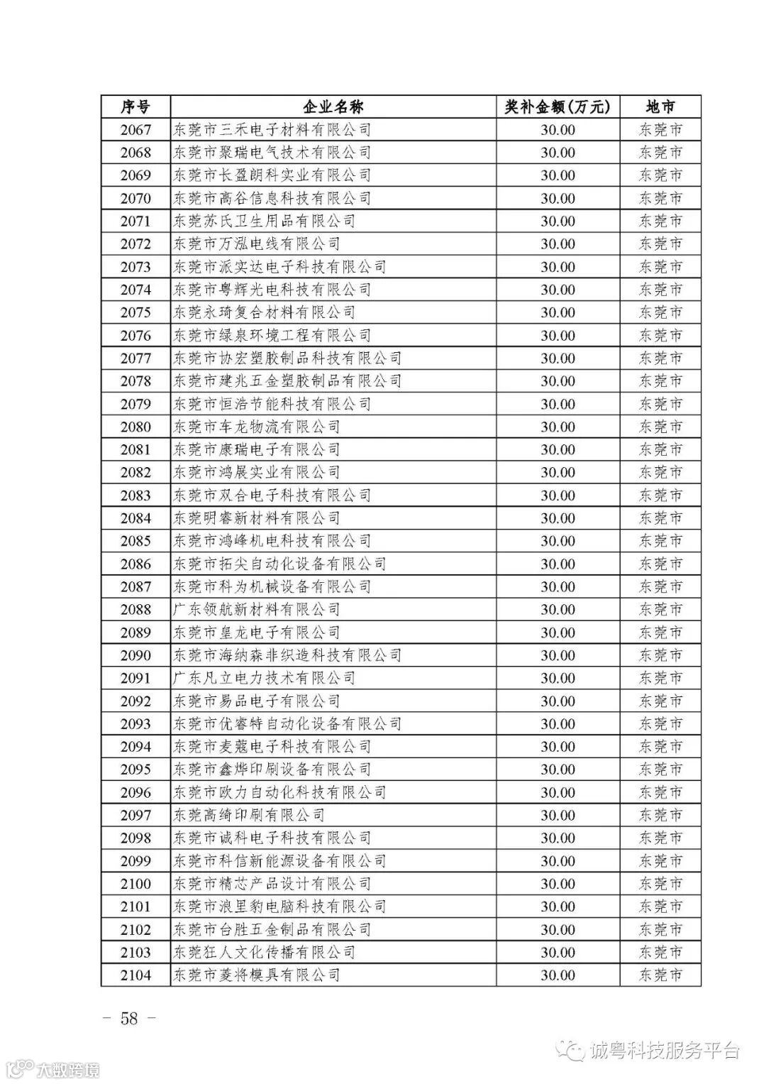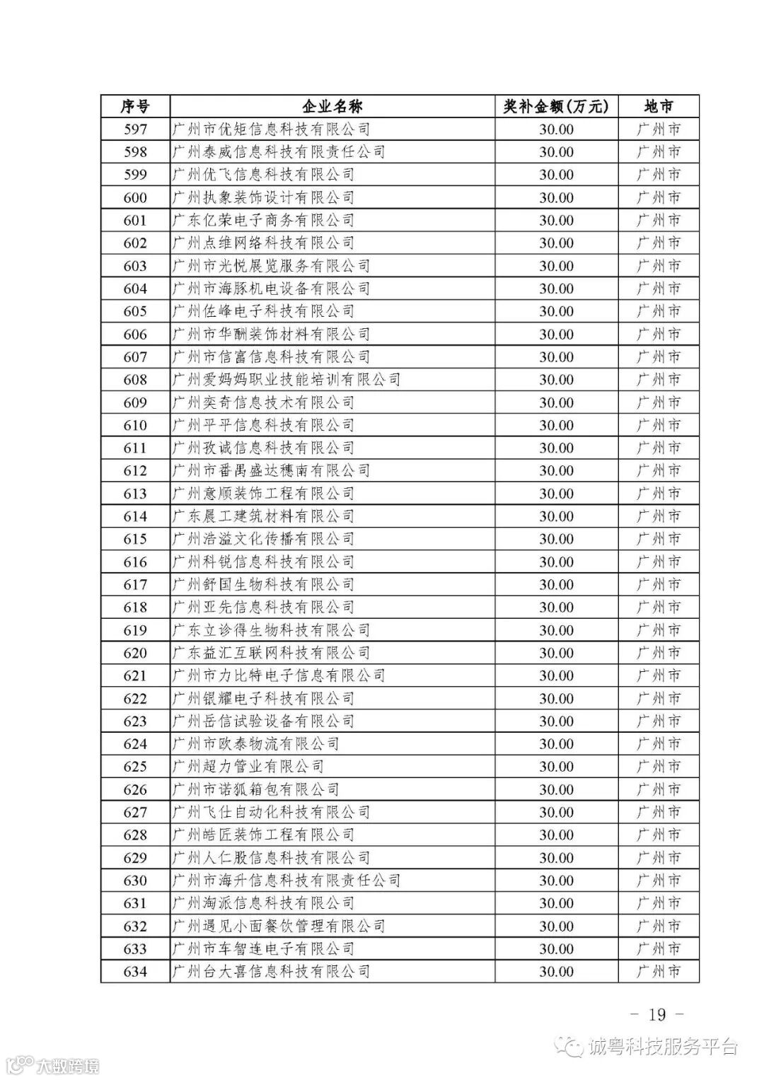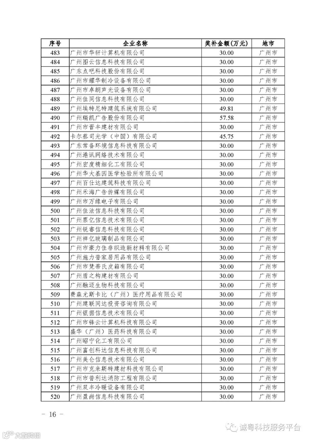 各有关单位: 根据《广东省高新技术企业培育工作实施细则》(粤科函高字〔2016〕1737号)的有关规定,经企业申报、专家评审、各地市培育机构核对奖补金额等程序,现对广州核心信息技术有限公司等2556家拟进入广东省2017年高新技术企业培育库的企业及奖补金额予以公示,公示期为5月2日-8日共7天。 如果对公示的拟入库培育企业及奖补金额有异议,请提供详细的事实证据,并于公示期内以实名、书面形式向省科技厅报告。对收到的异议,我们将严格按照相关规定处理。 附件:2017年广东省高新技术企业培育库拟入库企业(第二批)及奖补项目计划明细表 省科技厅 |