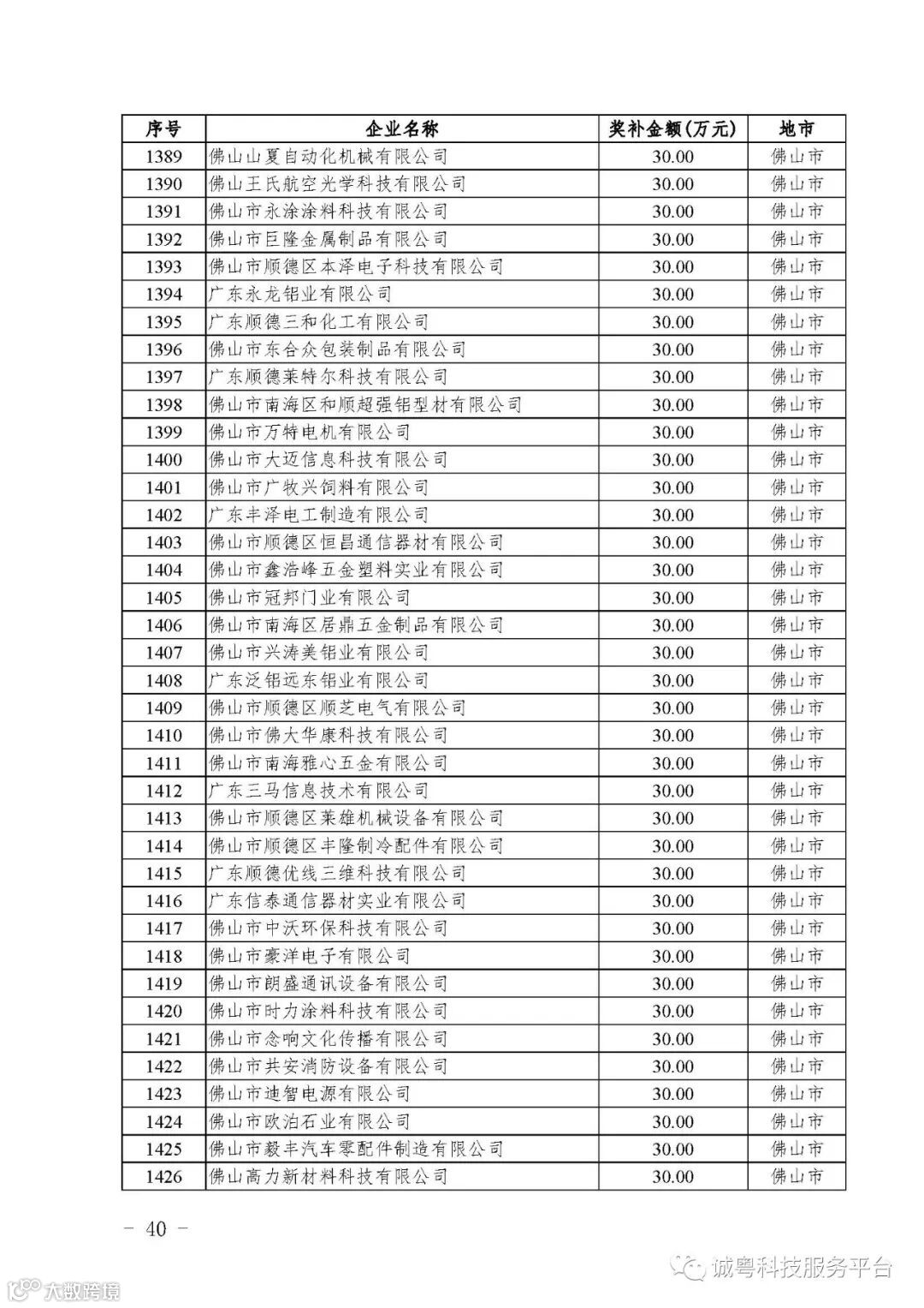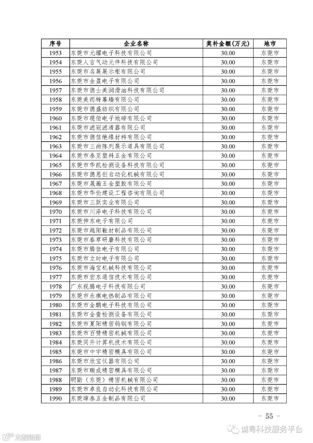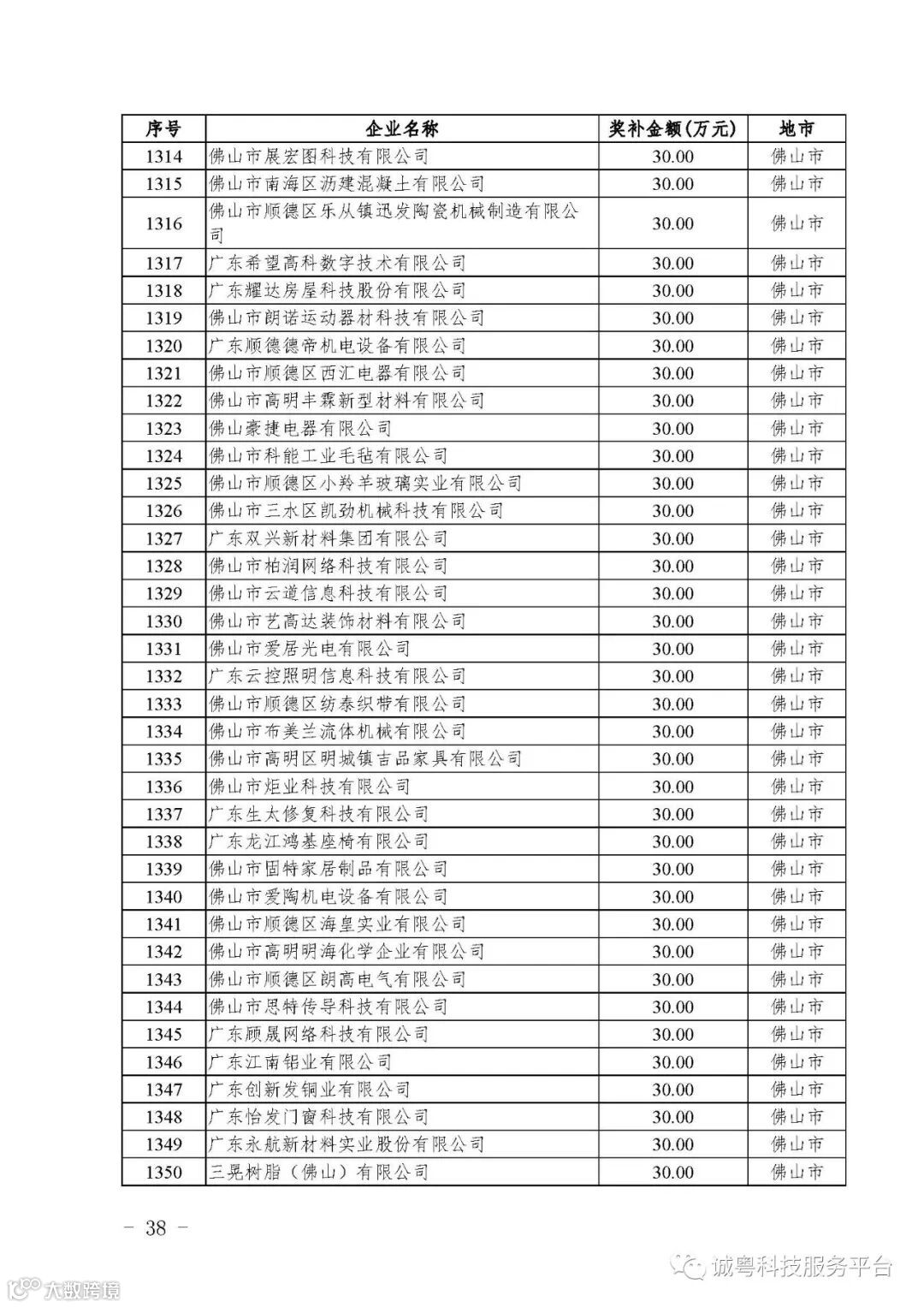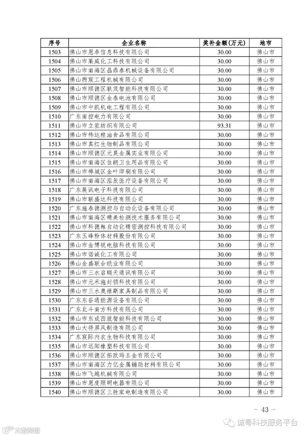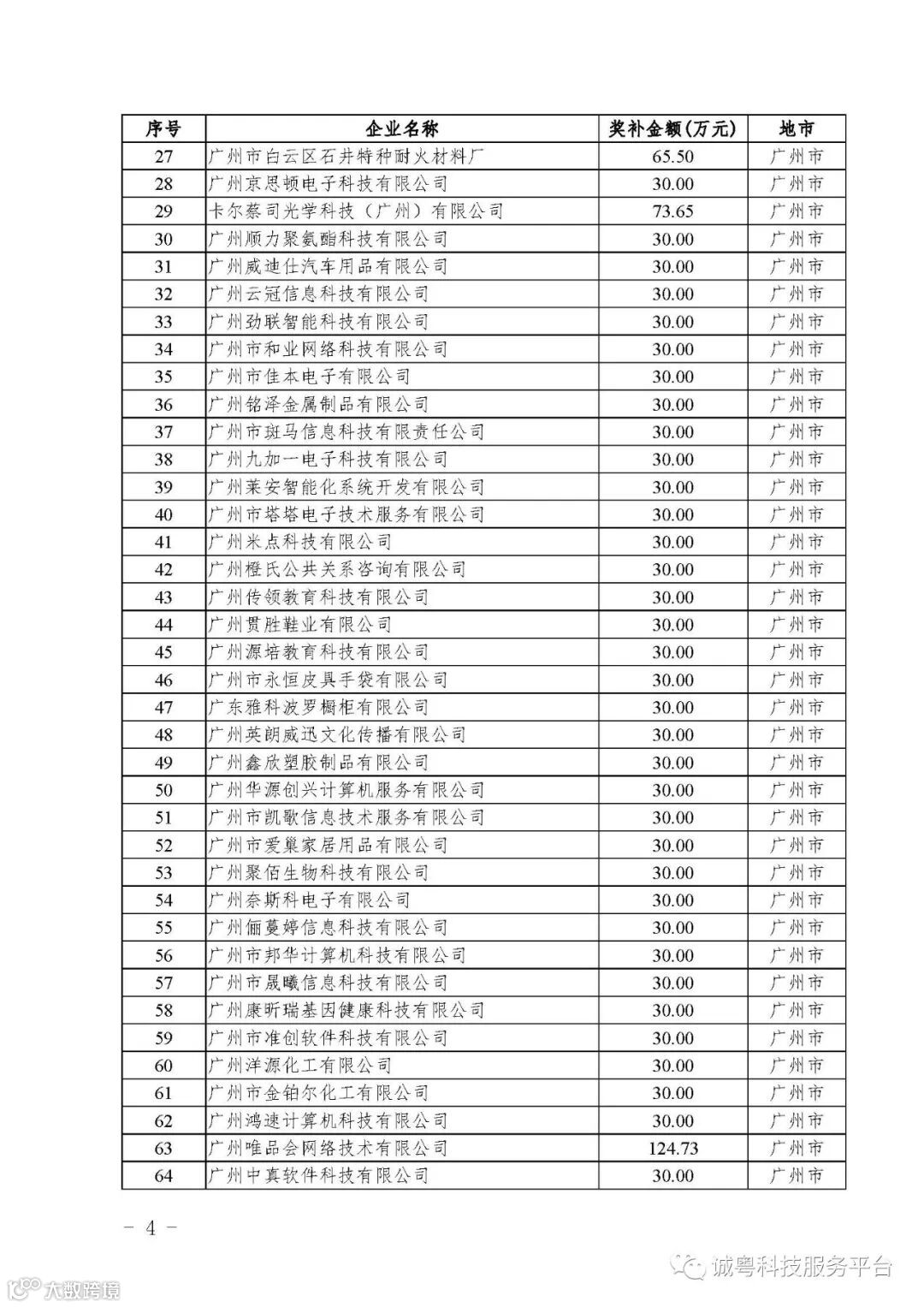 各有关单位: 根据《广东省高新技术企业培育工作实施细则》(粤科函高字〔2016〕1737号)的有关规定,经企业申报、专家评审、各地市培育机构核对奖补金额等程序,现对广州核心信息技术有限公司等2556家拟进入广东省2017年高新技术企业培育库的企业及奖补金额予以公示,公示期为5月2日-8日共7天。 如果对公示的拟入库培育企业及奖补金额有异议,请提供详细的事实证据,并于公示期内以实名、书面形式向省科技厅报告。对收到的异议,我们将严格按照相关规定处理。 附件:2017年广东省高新技术企业培育库拟入库企业(第二批)及奖补项目计划明细表 省科技厅 |