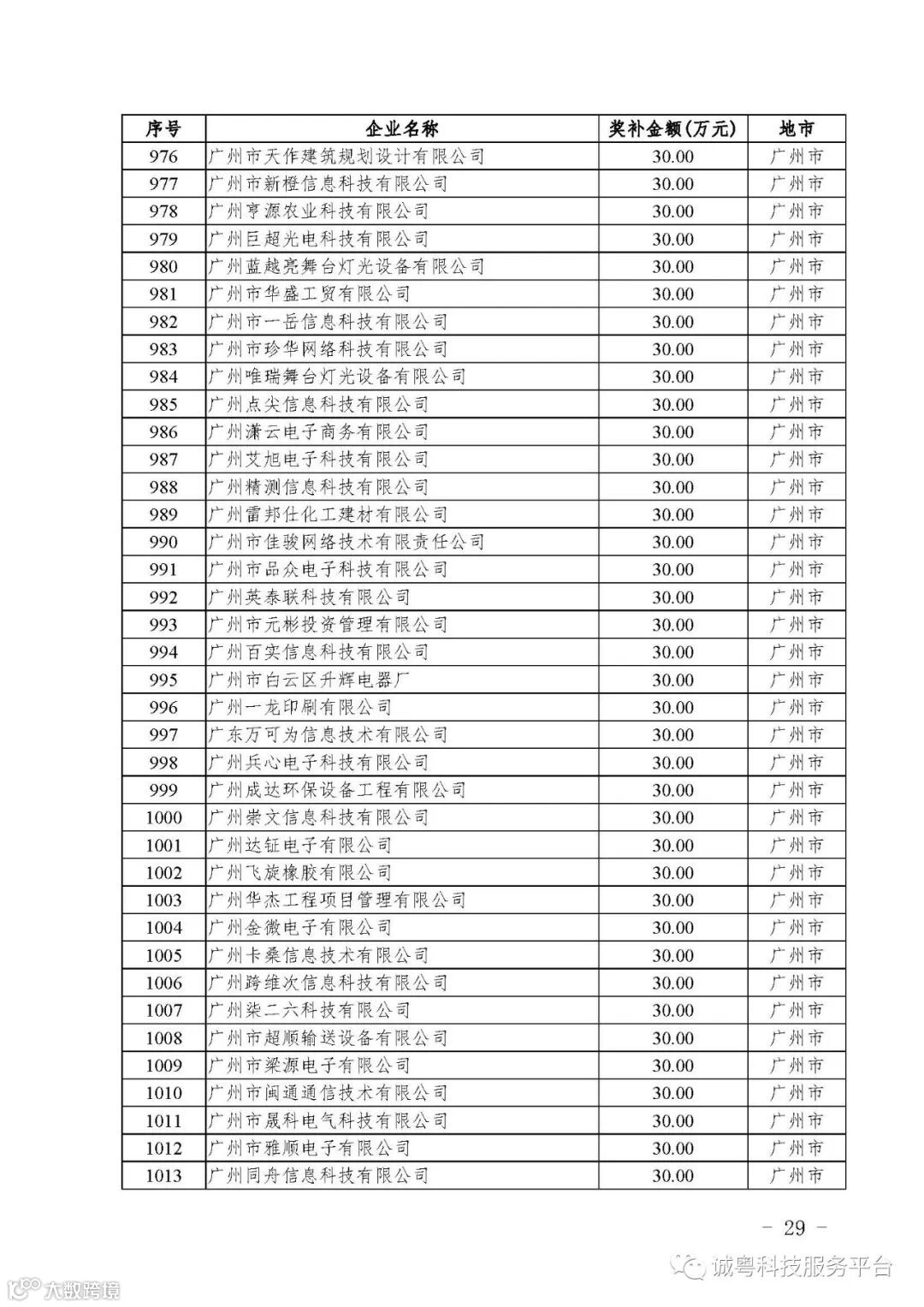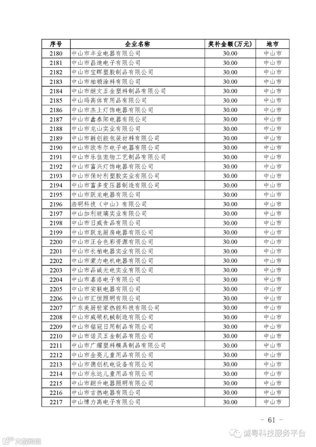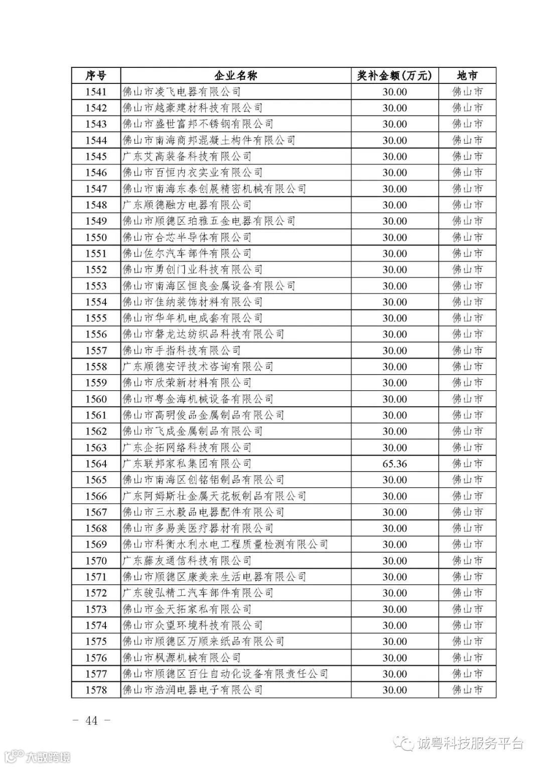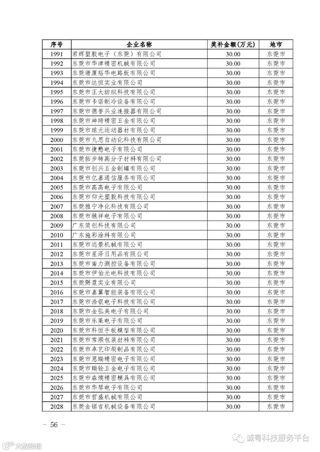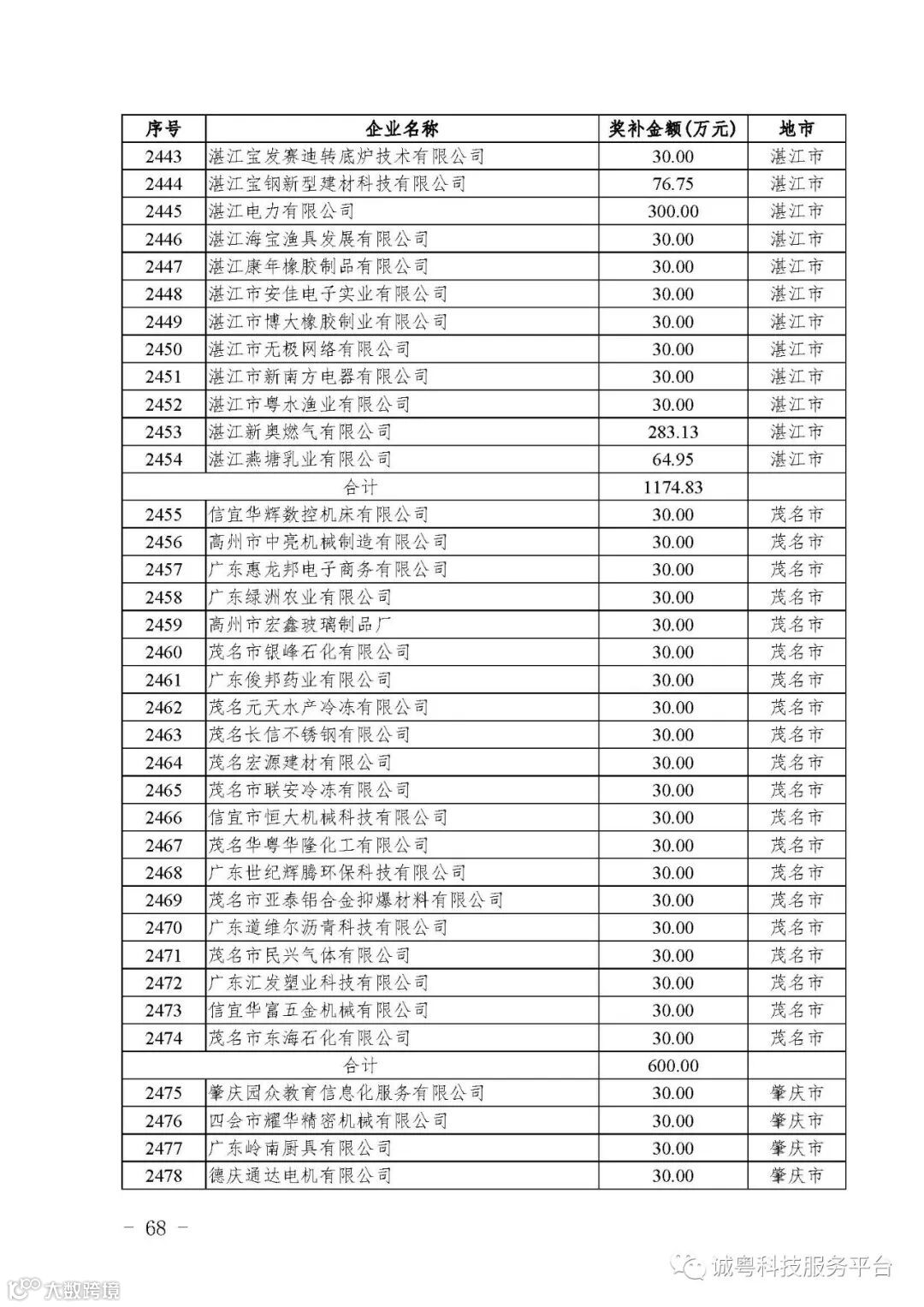 各有关单位: 根据《广东省高新技术企业培育工作实施细则》(粤科函高字〔2016〕1737号)的有关规定,经企业申报、专家评审、各地市培育机构核对奖补金额等程序,现对广州核心信息技术有限公司等2556家拟进入广东省2017年高新技术企业培育库的企业及奖补金额予以公示,公示期为5月2日-8日共7天。 如果对公示的拟入库培育企业及奖补金额有异议,请提供详细的事实证据,并于公示期内以实名、书面形式向省科技厅报告。对收到的异议,我们将严格按照相关规定处理。 附件:2017年广东省高新技术企业培育库拟入库企业(第二批)及奖补项目计划明细表 省科技厅 |