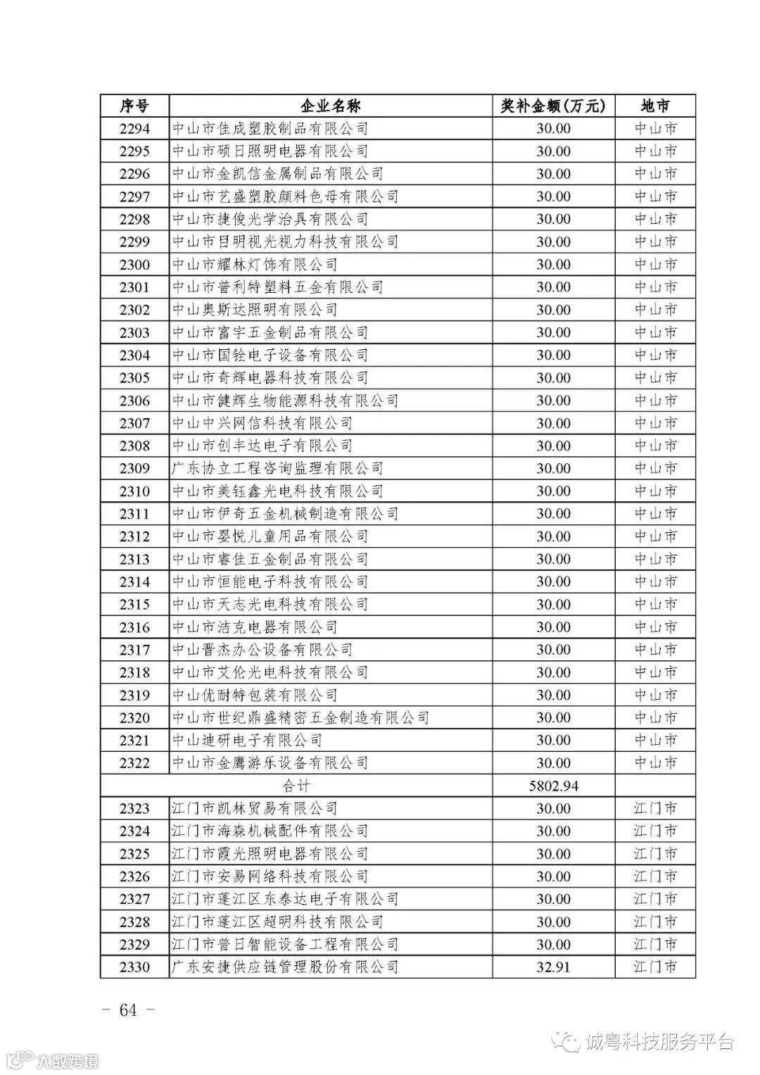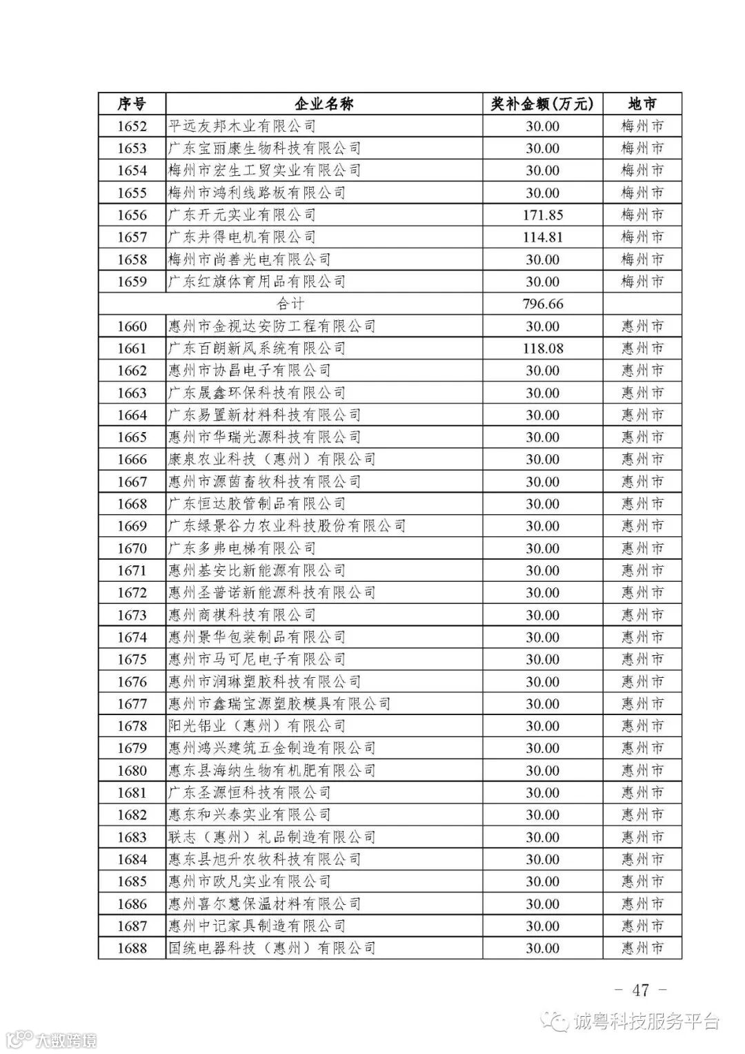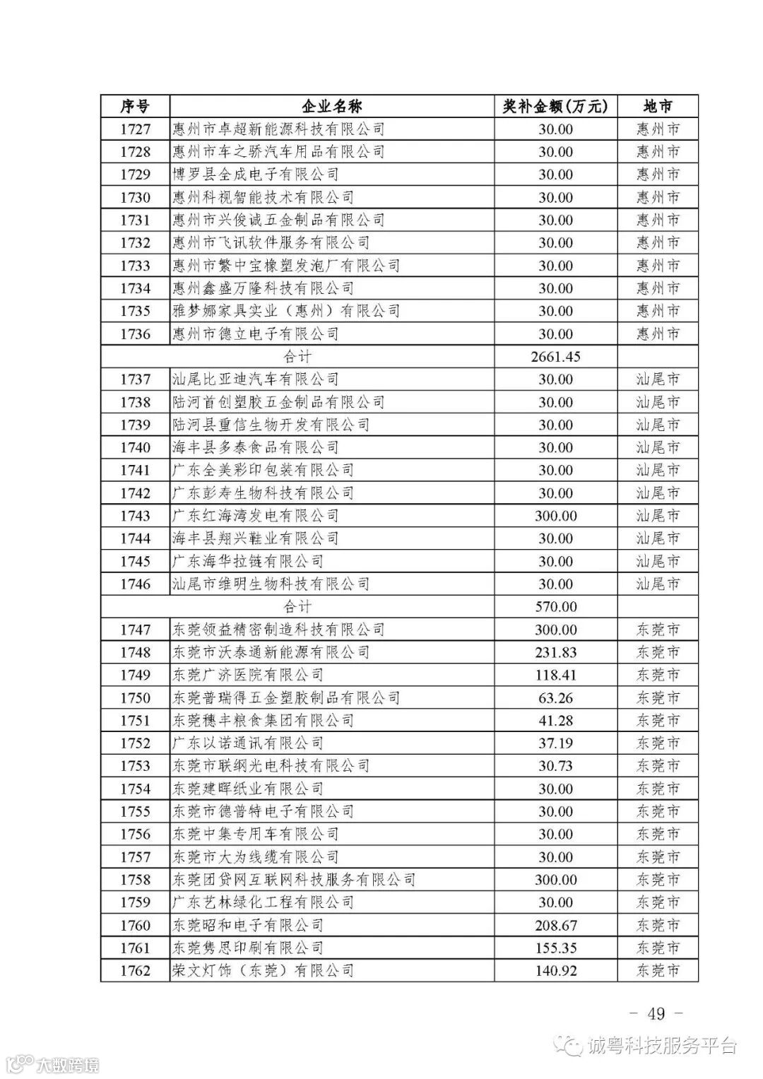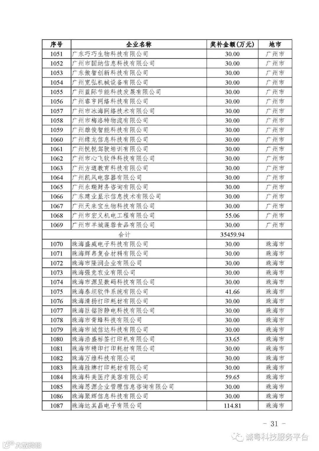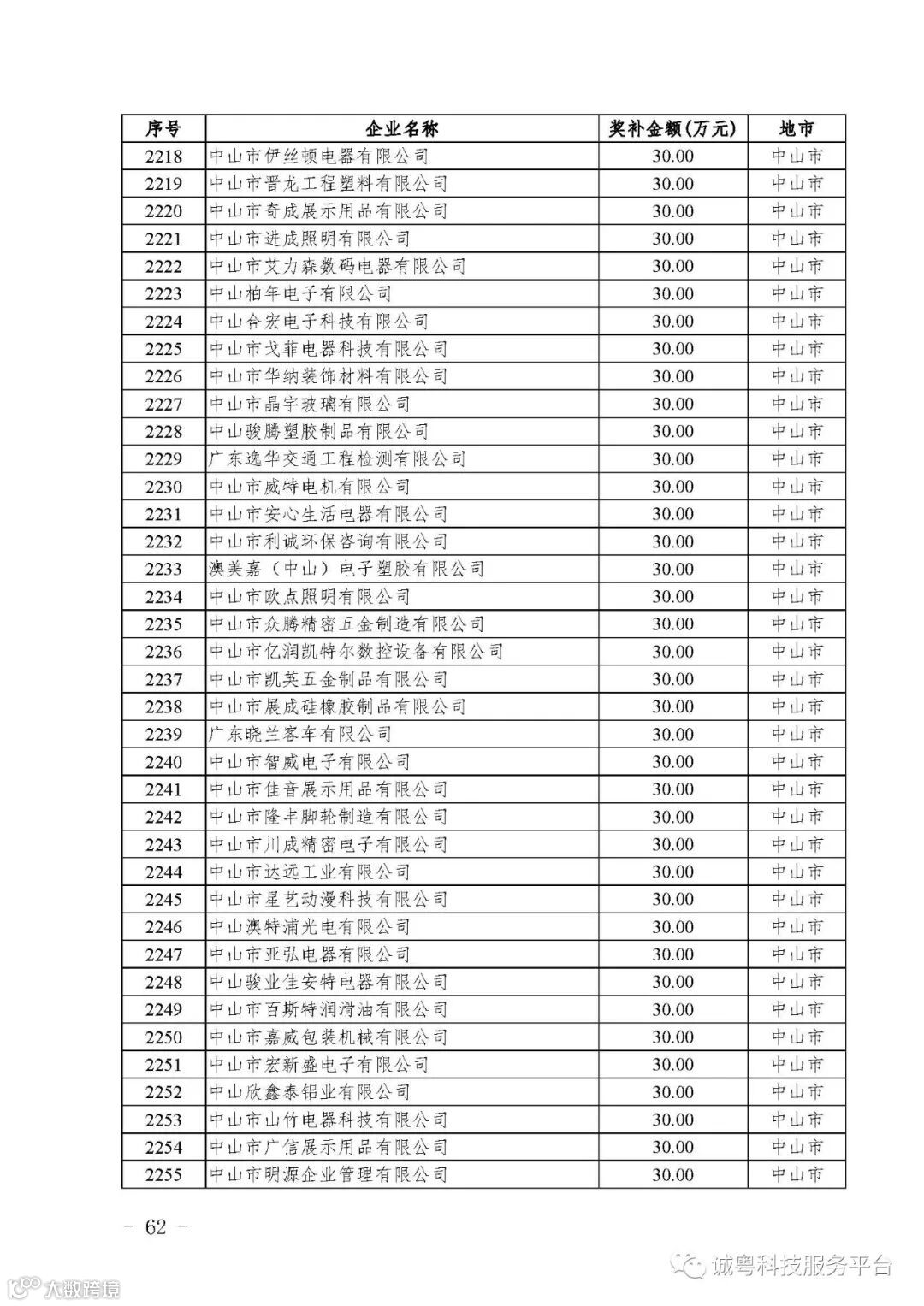 各有关单位: 根据《广东省高新技术企业培育工作实施细则》(粤科函高字〔2016〕1737号)的有关规定,经企业申报、专家评审、各地市培育机构核对奖补金额等程序,现对广州核心信息技术有限公司等2556家拟进入广东省2017年高新技术企业培育库的企业及奖补金额予以公示,公示期为5月2日-8日共7天。 如果对公示的拟入库培育企业及奖补金额有异议,请提供详细的事实证据,并于公示期内以实名、书面形式向省科技厅报告。对收到的异议,我们将严格按照相关规定处理。 附件:2017年广东省高新技术企业培育库拟入库企业(第二批)及奖补项目计划明细表 省科技厅 |