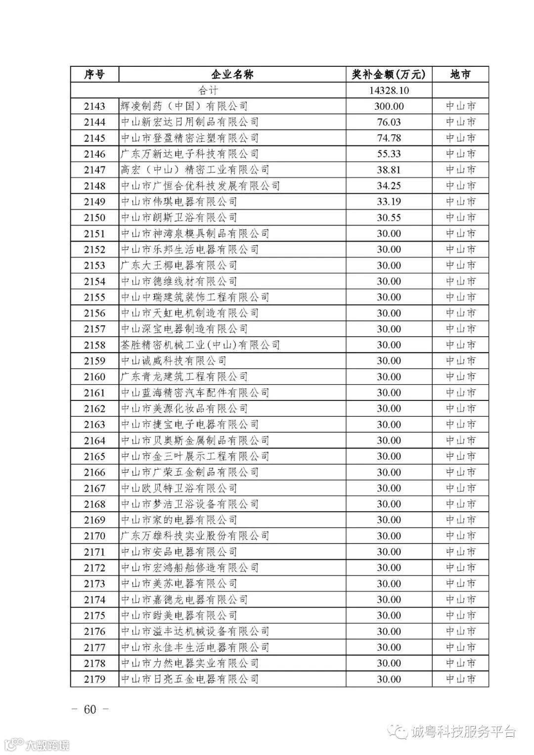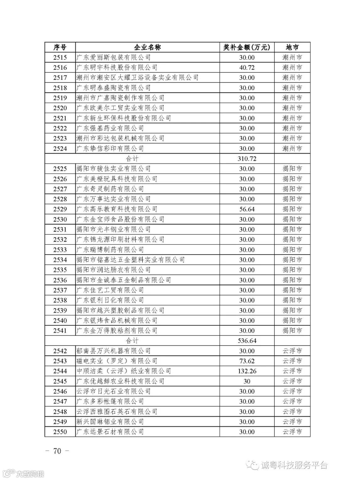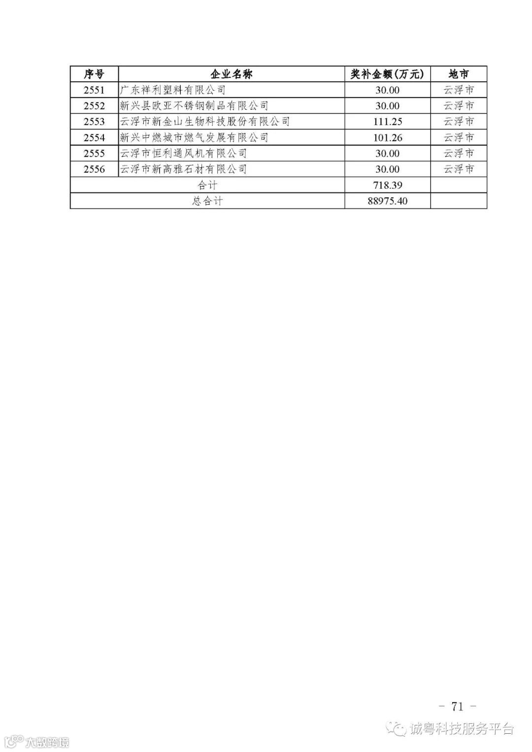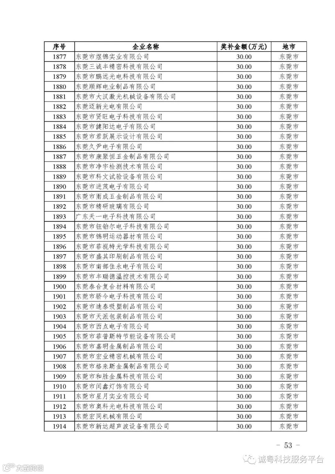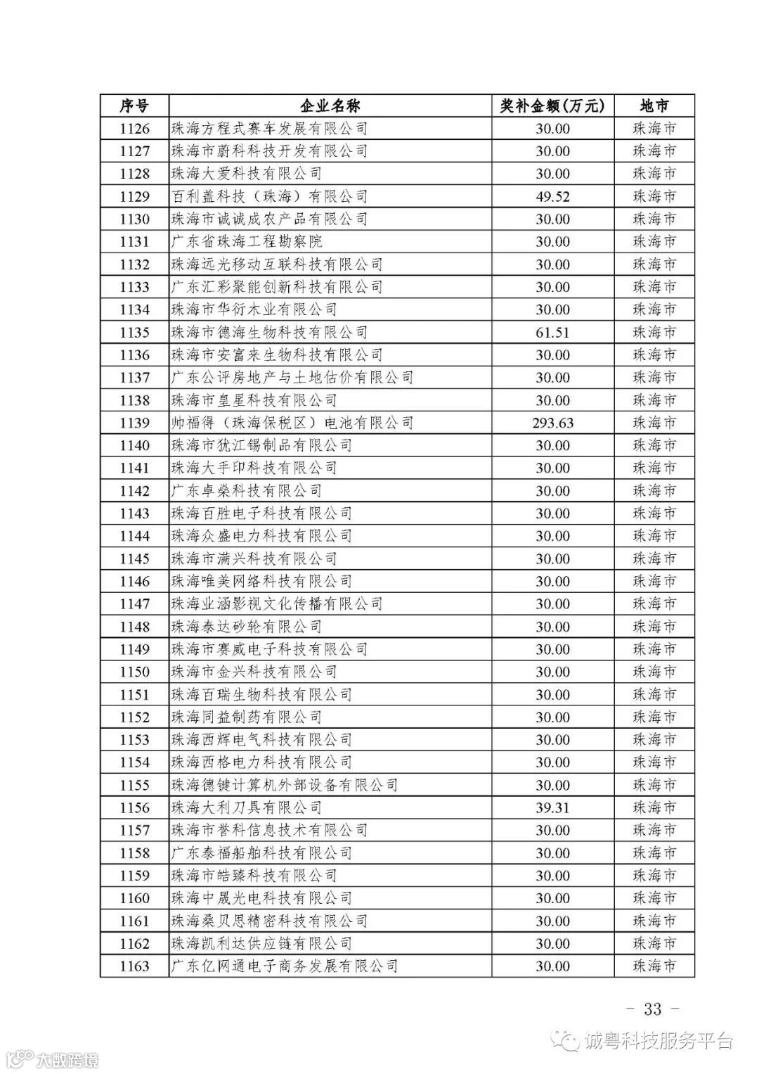 各有关单位: 根据《广东省高新技术企业培育工作实施细则》(粤科函高字〔2016〕1737号)的有关规定,经企业申报、专家评审、各地市培育机构核对奖补金额等程序,现对广州核心信息技术有限公司等2556家拟进入广东省2017年高新技术企业培育库的企业及奖补金额予以公示,公示期为5月2日-8日共7天。 如果对公示的拟入库培育企业及奖补金额有异议,请提供详细的事实证据,并于公示期内以实名、书面形式向省科技厅报告。对收到的异议,我们将严格按照相关规定处理。 附件:2017年广东省高新技术企业培育库拟入库企业(第二批)及奖补项目计划明细表 省科技厅 |