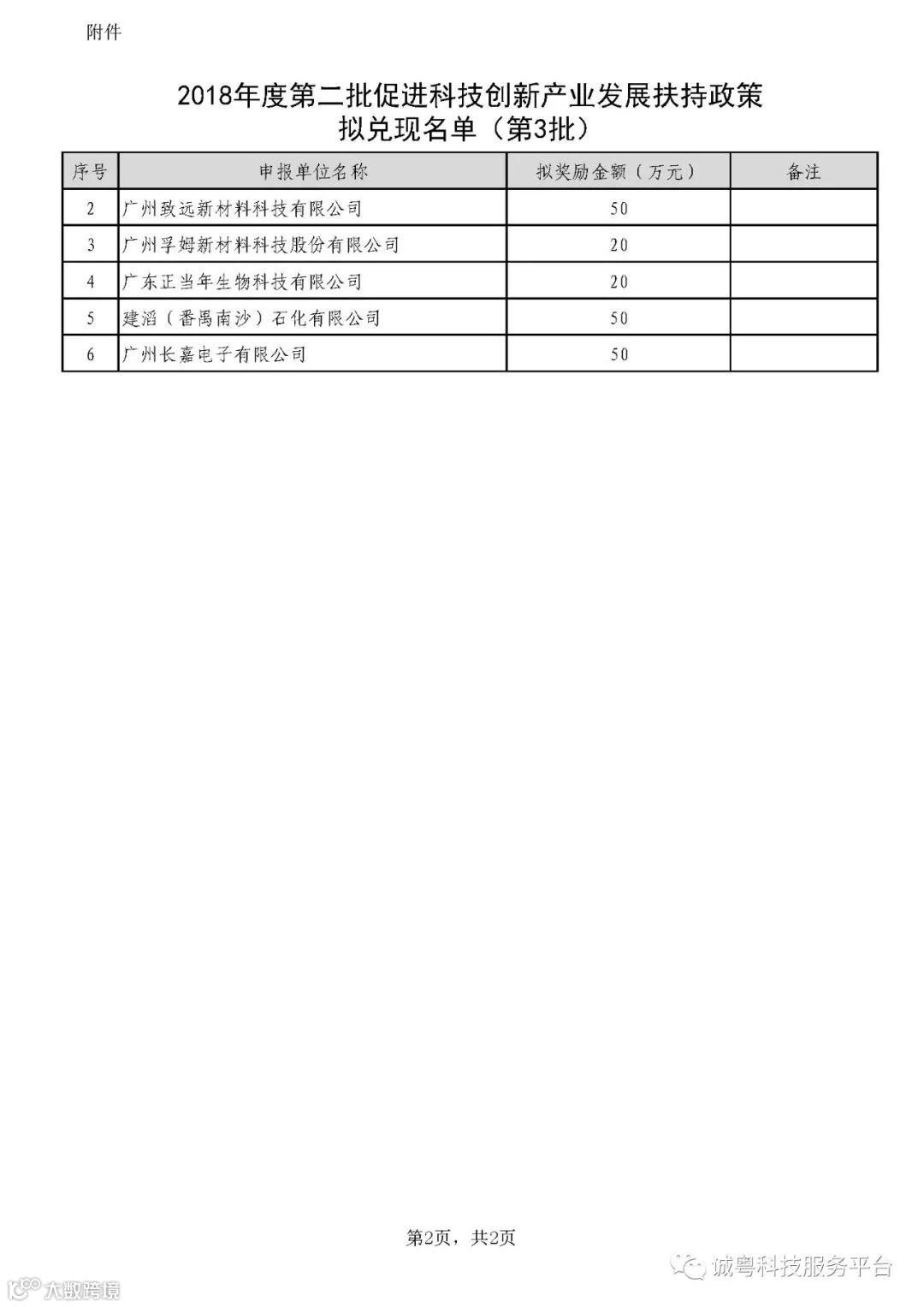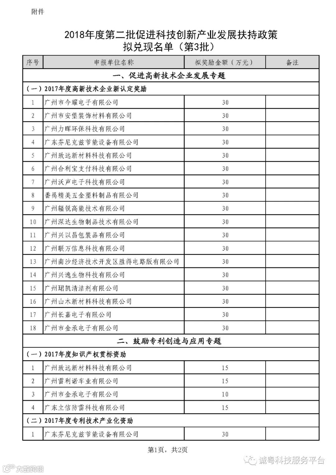附件:2018年度第二批促进科技创新产业发展扶持政策拟兑现名单(第3批)