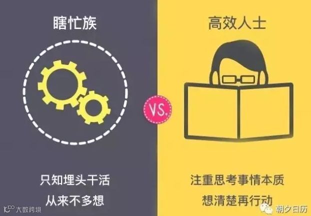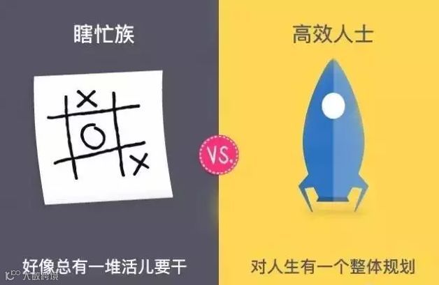 瞎忙族和高效人士的时间都安排得很满,但是却有本质的区别。瞎忙族是没有目标和方向的忙碌,整天被外部力量推着赶着,永远有忙不完的活,永远在救火,但是却说不上来忙了些啥,为了啥。