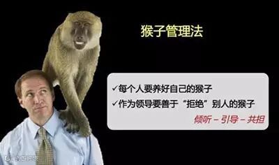 也只有愿意主动背负别人“猴子”的下属才有机会成为领导,也只有愿意主动背负别人“猴子”的小领导才有机会成为大领导,而没有“猴子”背负的下属或小领导就请反思反思吧!