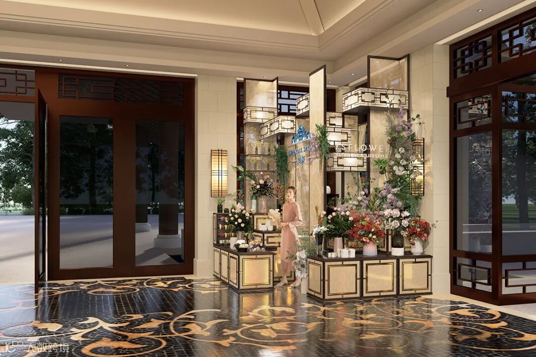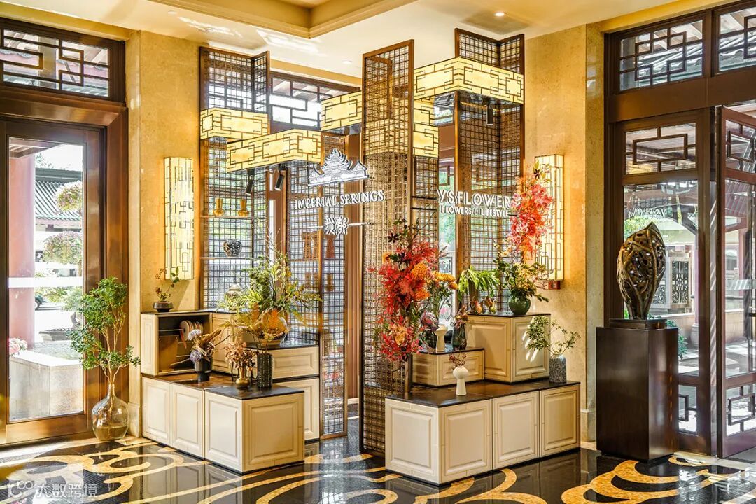 从都国际庄园携手YSFLOWER,在整个酒店公共空间特设开启式的花艺区域,位于住客必经的门厅大堂中。从传统到现代,领略室内装点的岭南气质,融合当下配搭的审美。