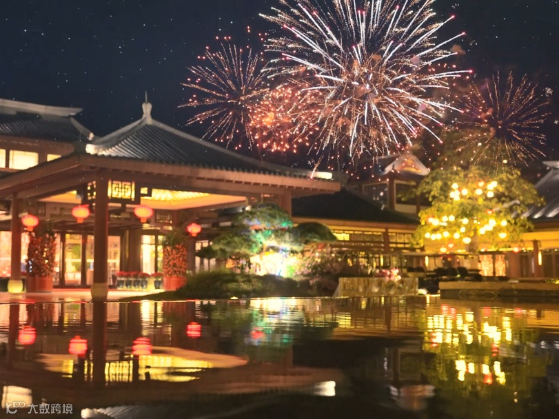早在一个月前,从都国际庄园里里外外就忙着为春节做精心布置了。道路两侧挂上了红灯笼和中国结,酒店、会所大堂等公共区域摆放了各种新年装饰,园林已经被细心修剪过,增加了许多应节的鲜花,整个庄园洋溢着浓浓的喜气,春意盎然。而最让大家期待的,是从除夕到年初三,每天晚上都会举行的烟花秀。