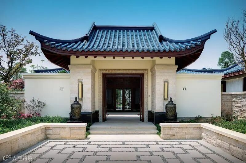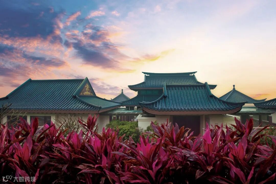 与青碧色的屋檐共同勾勒出一副浓墨重彩的图画