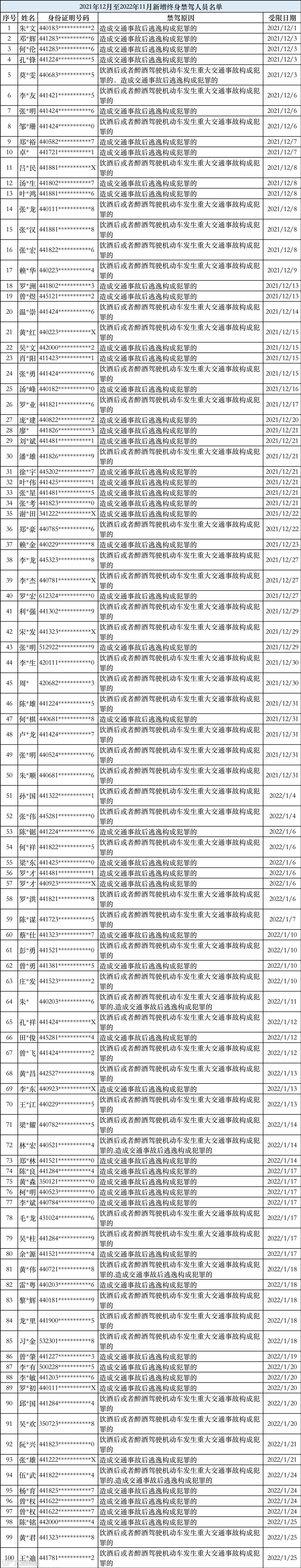 新增终生禁驾人员名单