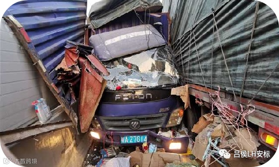 (4)车辆惯性大、制动距离长,纵向距离较小,前方有紧急情况时不能及时减速停车,易发生追尾和碰撞事故。