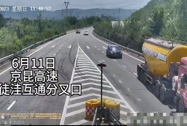2023年6月11日11时48分许,一辆大货车正在京昆高速司徒洼互通分叉口(石太方向)处倒车,后方车辆都紧急减速避让,险些酿成事故,随后向另一车道驶去,这一幕被“天眼”清晰的记录下来。