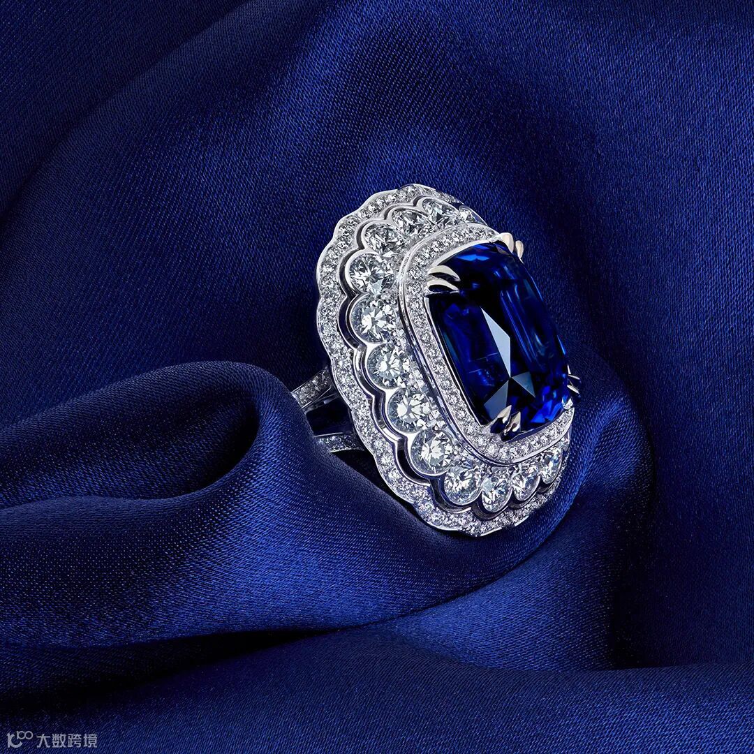 蓝宝石戒指拥有三层闪耀的钻石边镶,呼应了剑桥公爵夫人的戒指所采用的著名钻石群镶设计。这颗华丽的10.16克拉枕形切割蓝宝石,拥有SSEF和古柏林双重认证,属于Garrard“珠宝库”臻选,每一件设计只选择最为出色的珍贵稀有宝石,独一无二,不可复制。