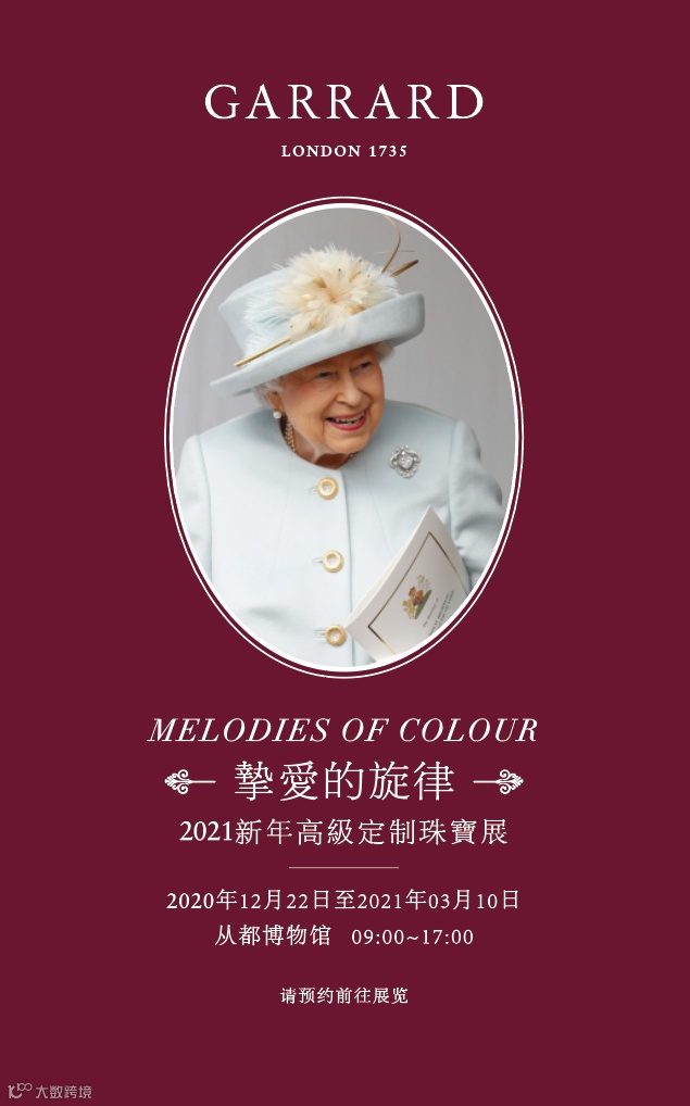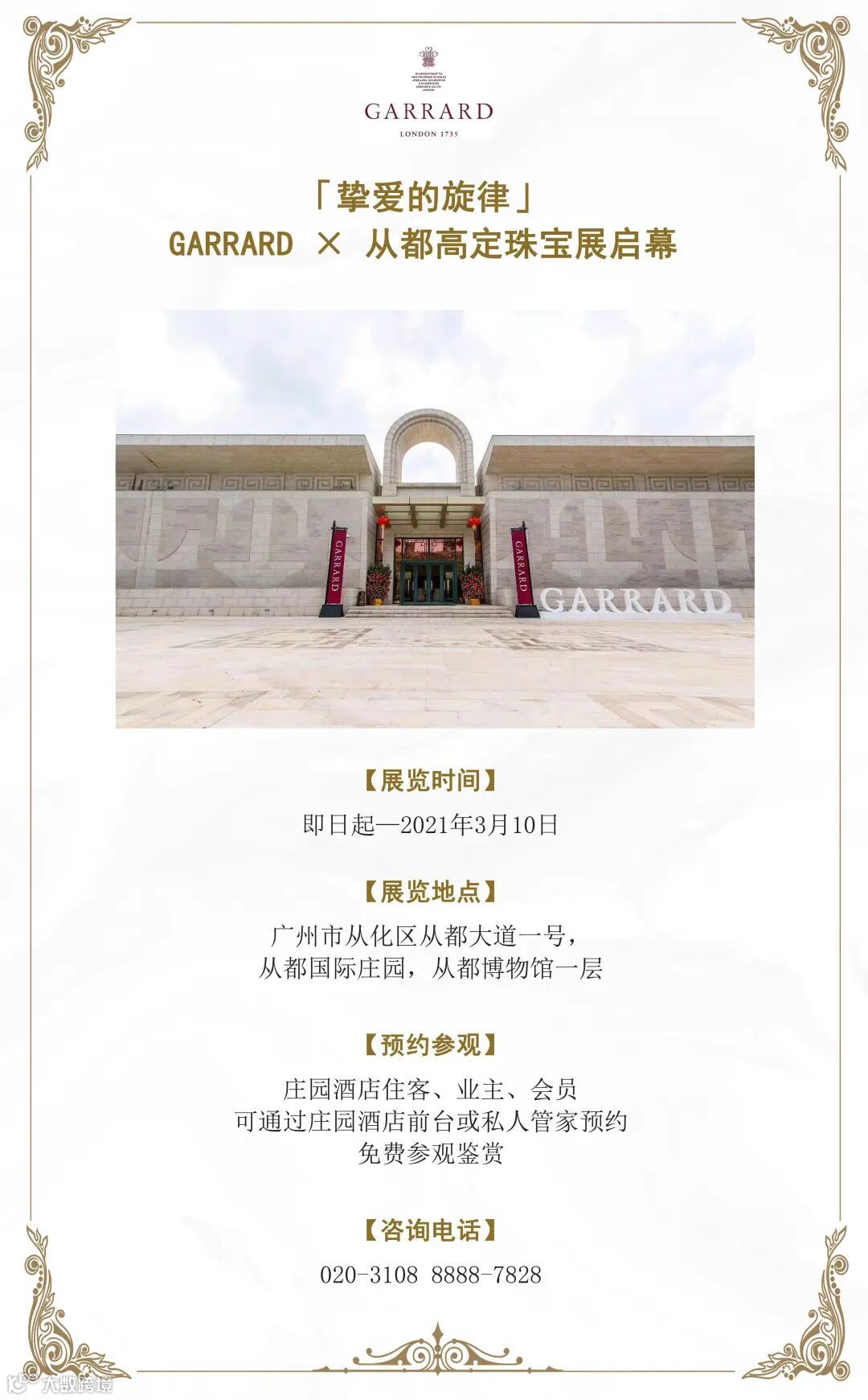 即日起-2021年3月10日期间,Garrard将在从都国际庄园举办2021年高定珠宝展。以“挚爱的旋律”为主题,复原英国白金汉宫王室厅的国王宝座,展出英国工坊200余件手工制作高级珠宝臻品,讲述Garrard 285年服务于英国王室的传奇故事。展览伴有小型音乐会,由青年艺术家演绎维多利亚时期经典乐章,品牌大使穿插讲述Garrard自1843年起的辉煌历史。