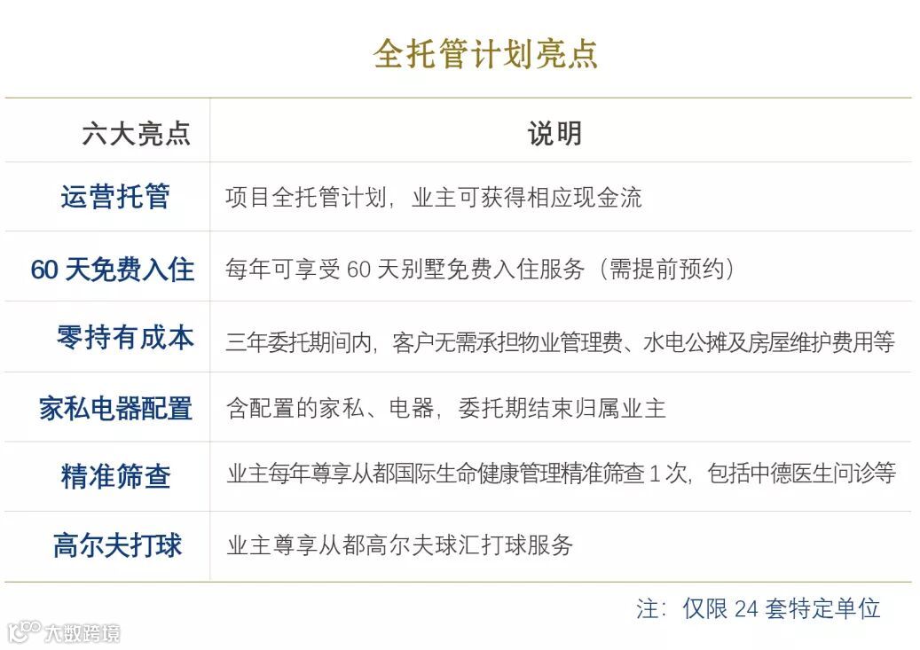 为了满足部分业主既投资又度假的需求,庄园特拿出一个组团24套单位,提供全托管服务,提供六大核心服务内容。