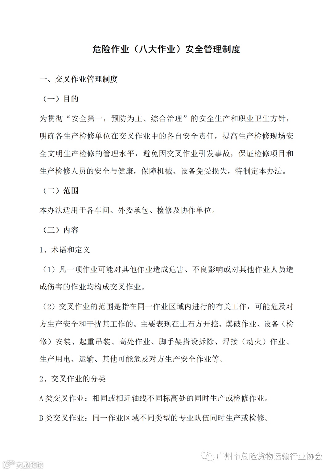 导读:危险作业(八大作业)安全管理制度参考范本