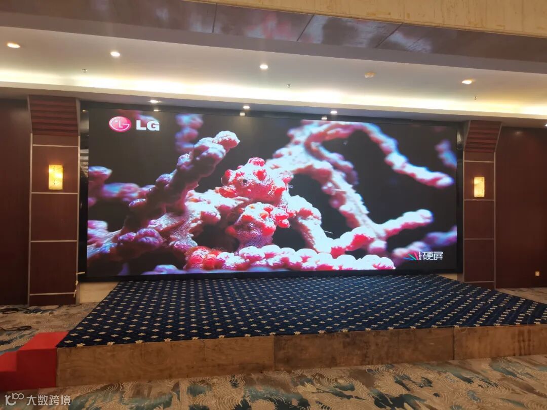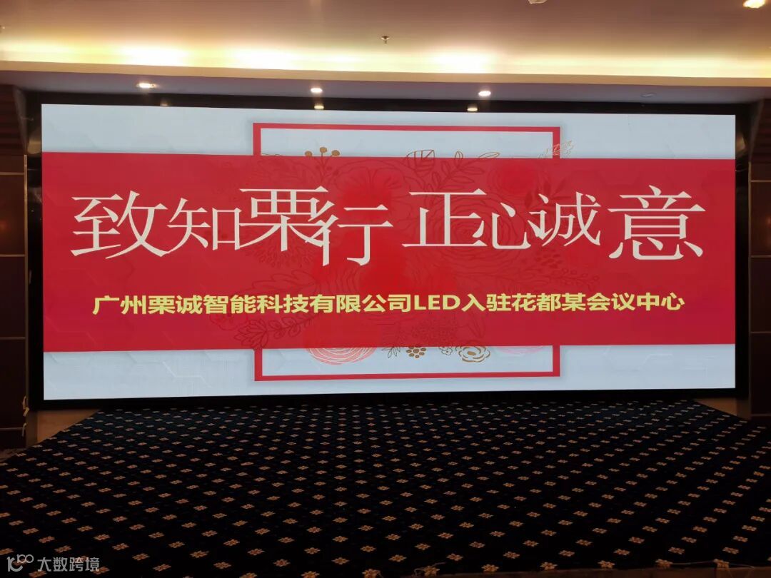 LED大屏安装于花都某会议中心多功能会议室,全屏20.28平方米,为室内P2.5LED屏。