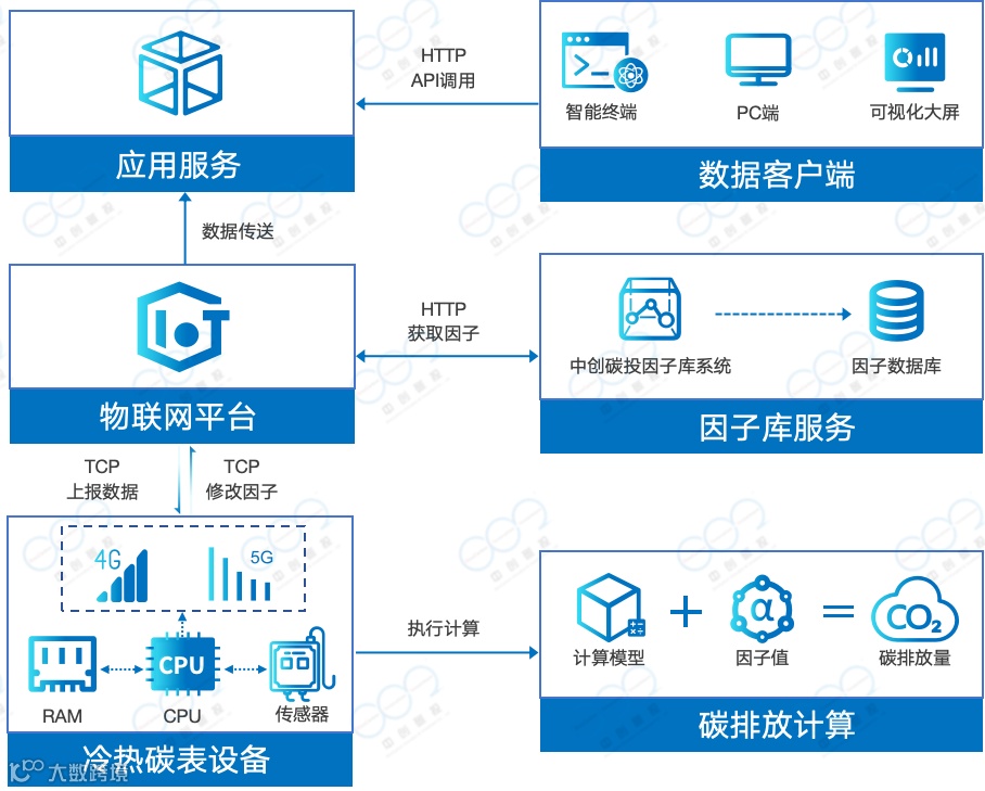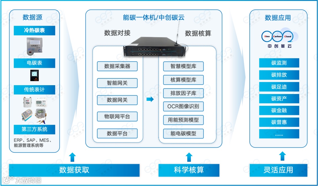 冷热碳表通过结合传统的采集传感器、物联网技术实现各种场景中的自动抄表;随时结合不同能源属性和供能设备,结合能碳转换模型和动态因子库,实现能碳转化的边缘计算和本地显示。同时,数据可上传至云端,通过物联技术与数据云端储存高效地服务应用端,实现碳排放精准溯源,确保碳排放数据的可视、可信、可比。