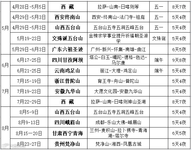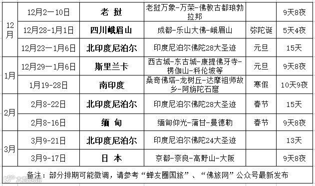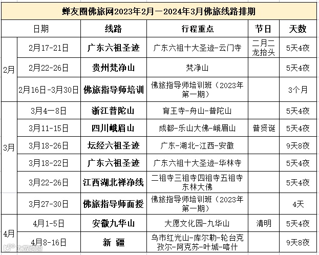蝉友圈(佛旅网)2023年2月-2023年12月佛旅游学线路排期: