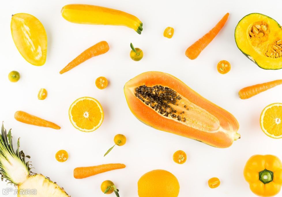 南瓜、胡萝卜、芒果、木瓜等黄色果蔬