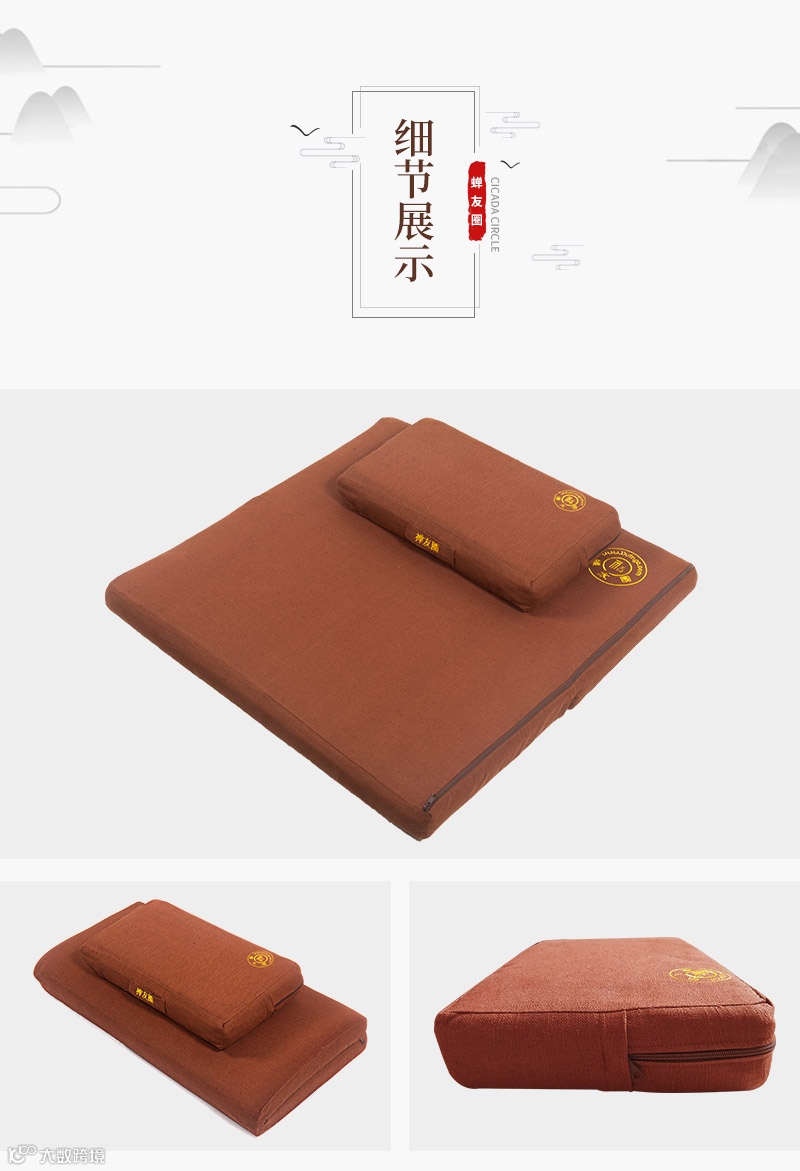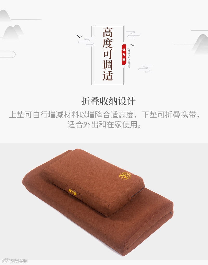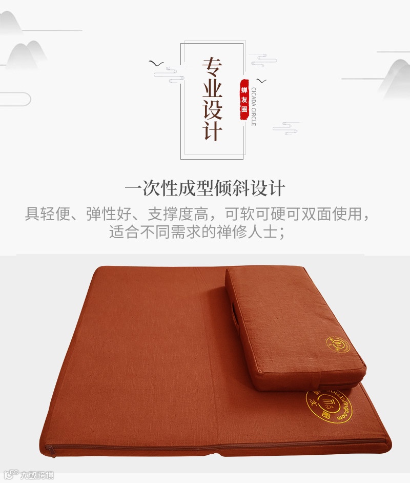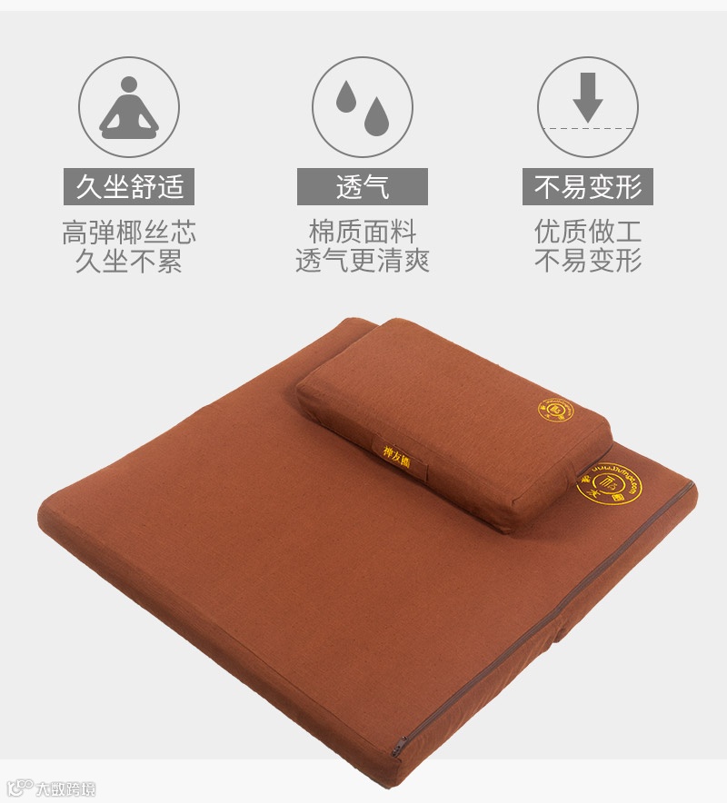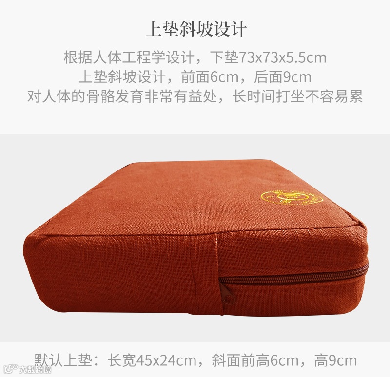 可软可硬可双面使用,适合不同需求的禅修人士;可自行增减材料以增降合适高度,下垫可折叠携带,适合外出和在家使用。
