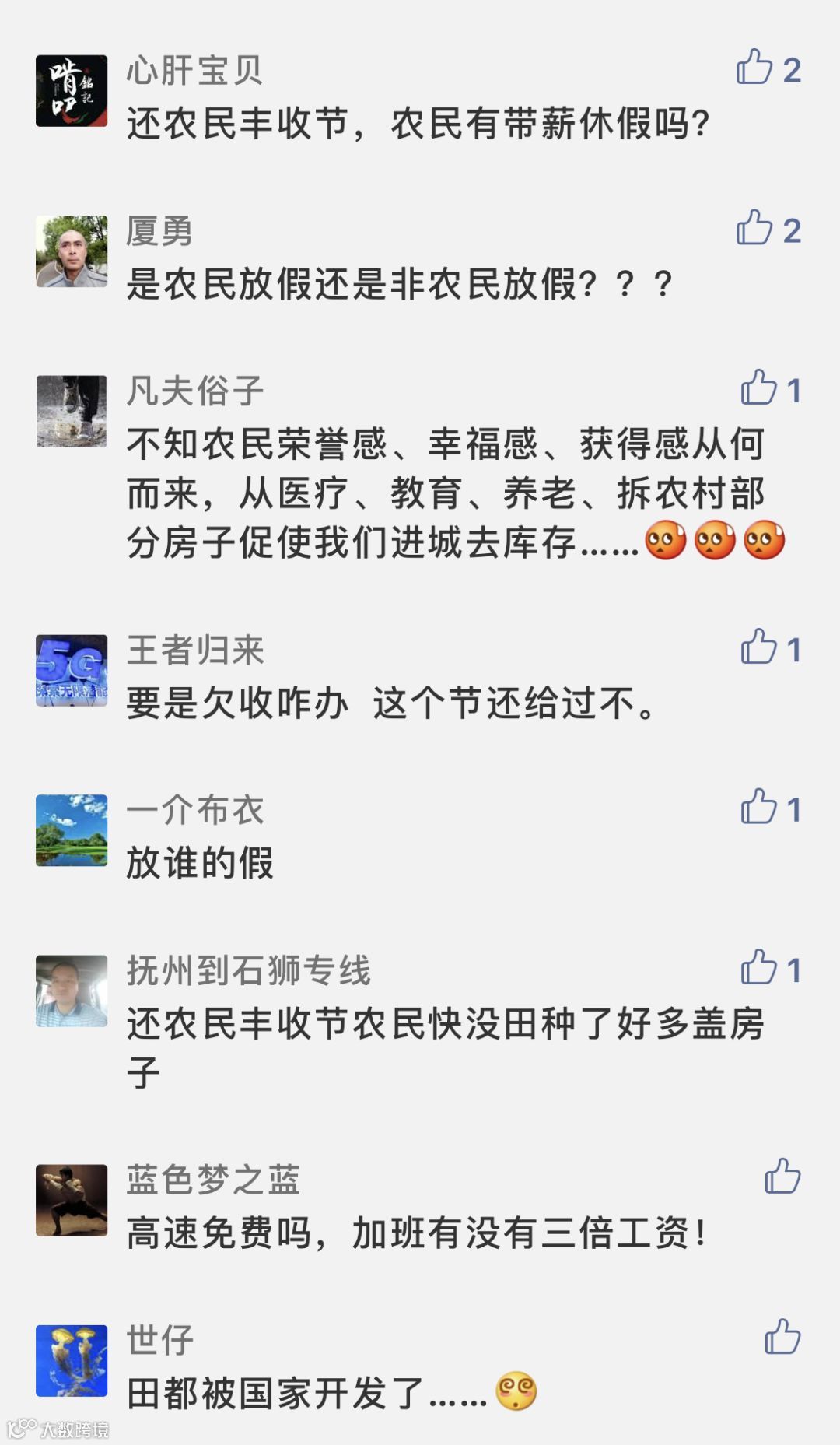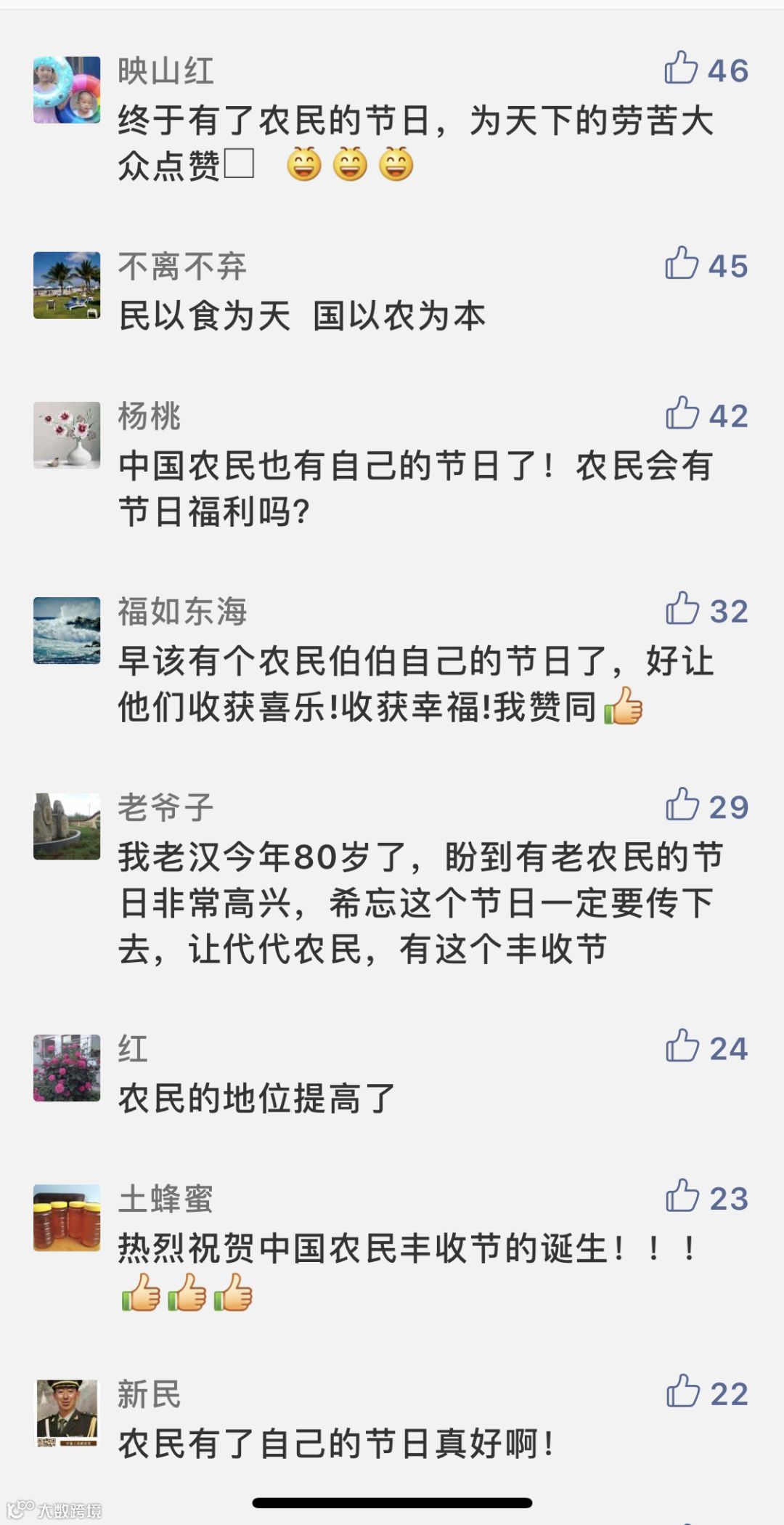有意思的来了,设立中国丰收节的消息一出,很多人的第一反应是,有没有假放,高速免费不,还有一些人在朋友圈发文称,好希望可以有一亩自己的良田呐,可以亲身感受下那份收获的快乐。