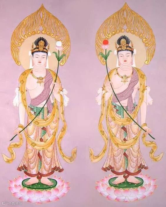 日光菩萨与月光菩萨共同辅弼东方净土药师如来弘扬正法,一左一右,普渡有情,位补佛处,尊贵有如释迦佛侧的文殊、普贤菩萨。