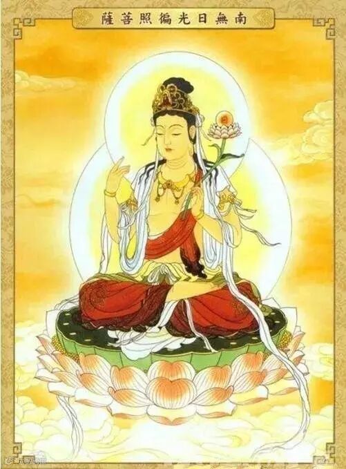 日光菩萨的“日光遍照”在佛法上表智慧,放射无量光明,普透一切宇宙生命,使自昏昧迷蒙中醒觉;