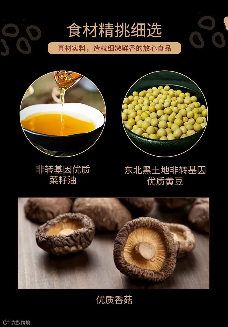 ·精选原料:非转基因优质黄豆+优质香菇+非转基因菜籽油