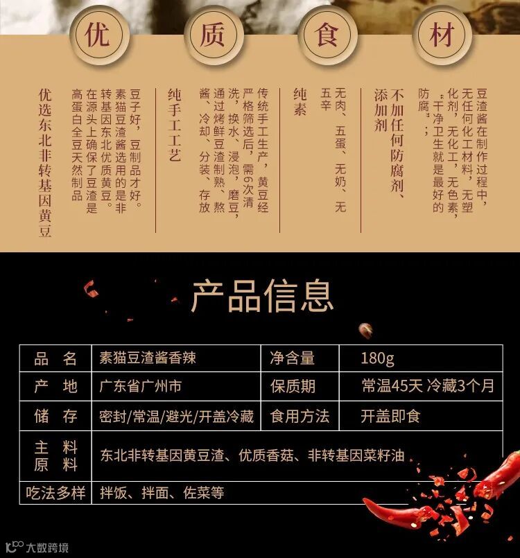 ·古法工艺:素猫鲜豆渣经古法制作、自然晒干&古法手工熬酱