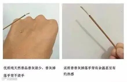 1、握过香之后,满手都是香的颜色,说明香中含有劣质色粉。