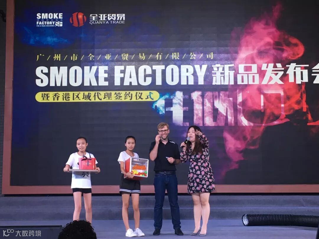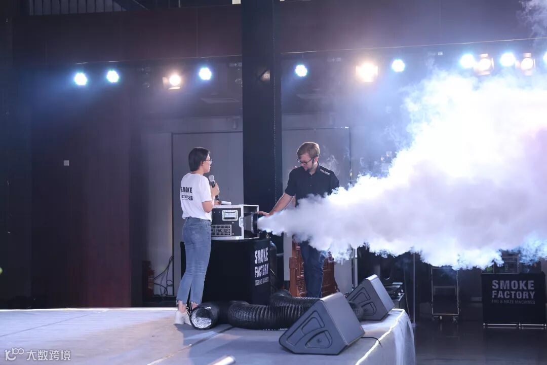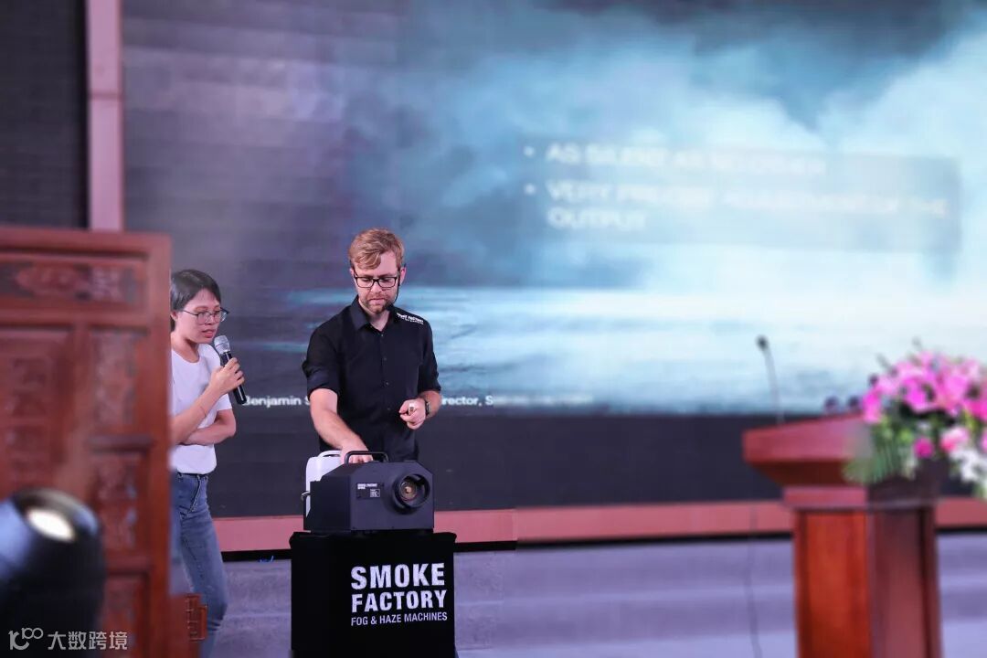 在SMOKE FACTORY总裁的致辞结束后,便是发布会新产品的介绍和展示环节。全亚的总经理助理林小姐以流畅的实时翻译与SMOKE FACTORY品牌销售总监—Benny共同配合,展示了一款款设计新颖,做工精密,质量可靠的高端舞台烟雾特效设备,吸引了台下每一位来宾的注意。