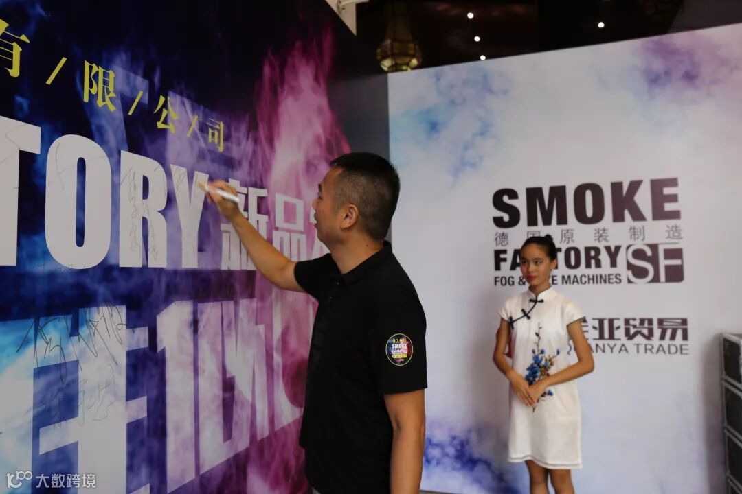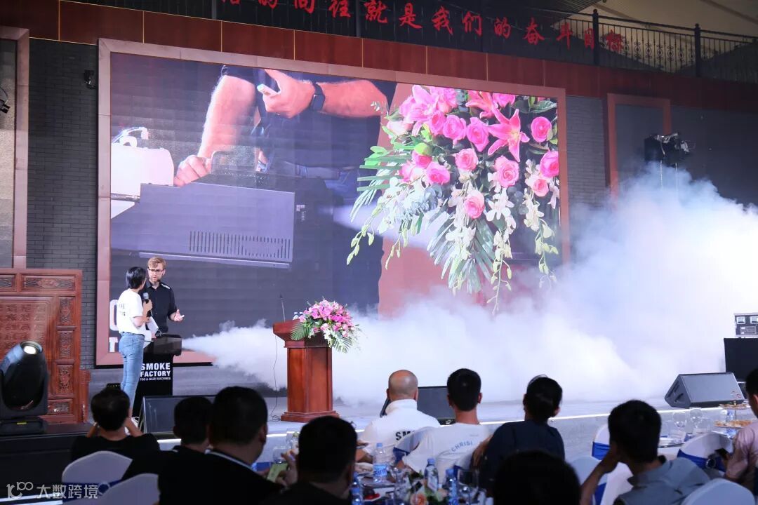 主持人介绍了全亚特效公司的简介,还有从德国专门远渡而来的SMOKE FACTORY品牌的总裁和销售经理。在一阵阵热烈的掌声中,全亚特效总经理陈总开始了致辞,道出了全亚特效的初心——致力于打造高端、专业、稳定的舞台特效设备,全亚特效一路发展以来实属不易,感恩德国SMOKE FACTORY品牌的支持,感谢广大来宾和客户的一如既往的支持。