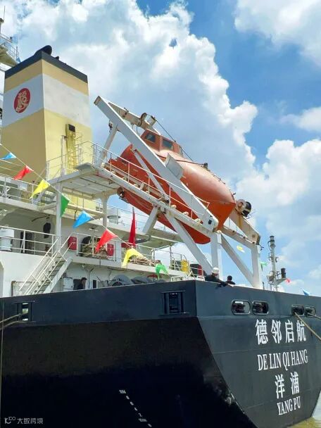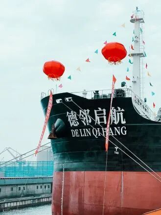 “德邻启航”轮,船长155米,型宽23米,型深12.6米,载重量21903吨,双方将共同进行品牌培养,打造精品运输航线。
