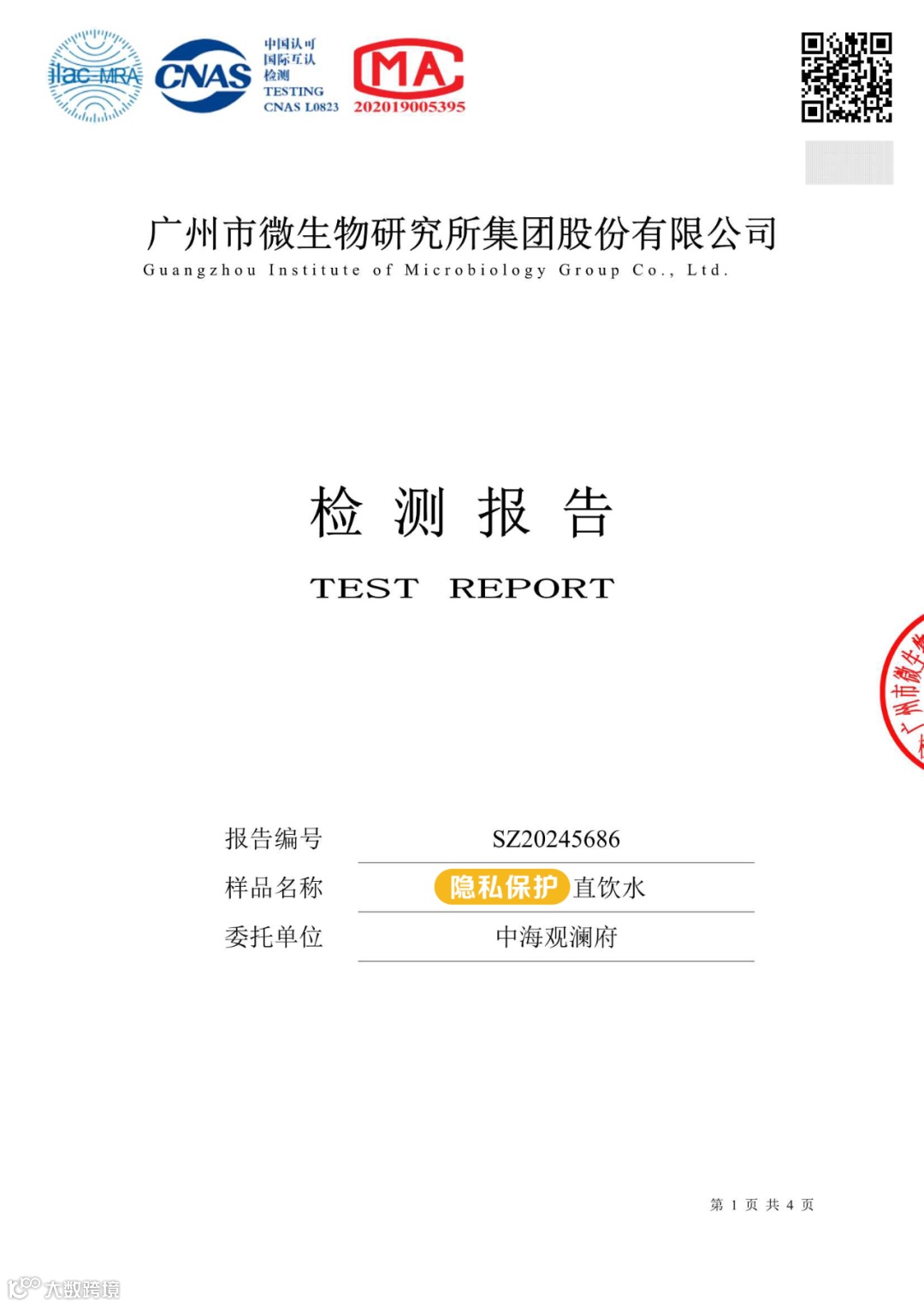为保障每个用户的饮水安全和品质,高得管道直饮水每季度定期从中海观澜府采取水样送至第三方机构检测水质,并公示水质检测报告。
