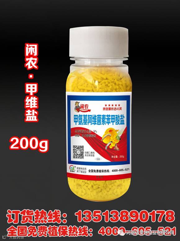 (五)甲维盐在使用中经过大量临床发现,不能在作物的生长期内连续用药,最好是在第一期虫发期用过后,第二次虫发期使用别的农药间隔使用!
