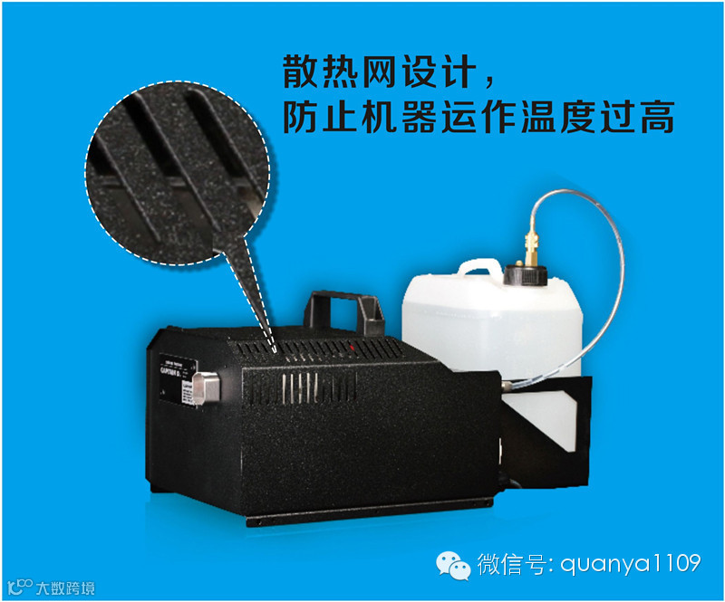 1、1300W的雾机烟雾粒子输出量,可堪比3000W的出烟量,烟雾粒子可1%—99%线性调整输出,烟雾粒子覆盖面积达40000立方尺/min